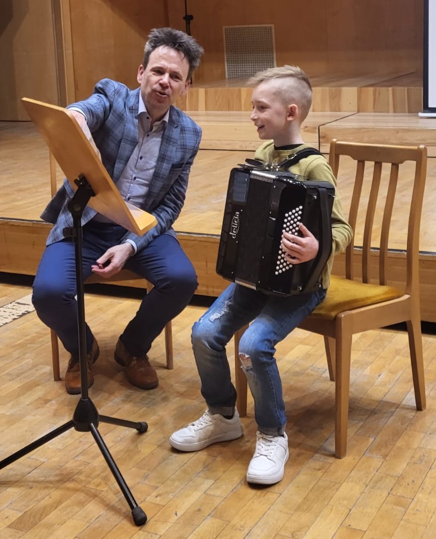 W warsztatch akordeonowych wziął udział uczeń I klasy c. 6-l., Filip Łakomik.