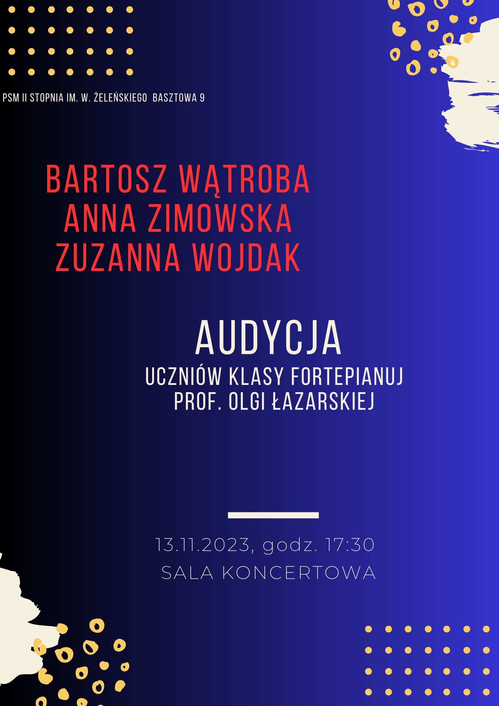 Audycja uczniów klasy fortepianu 13.11.2023 godz.17.30 09.11.2023 Zdjęcia (1) Pokaż zdjęcie 1 z galerii.