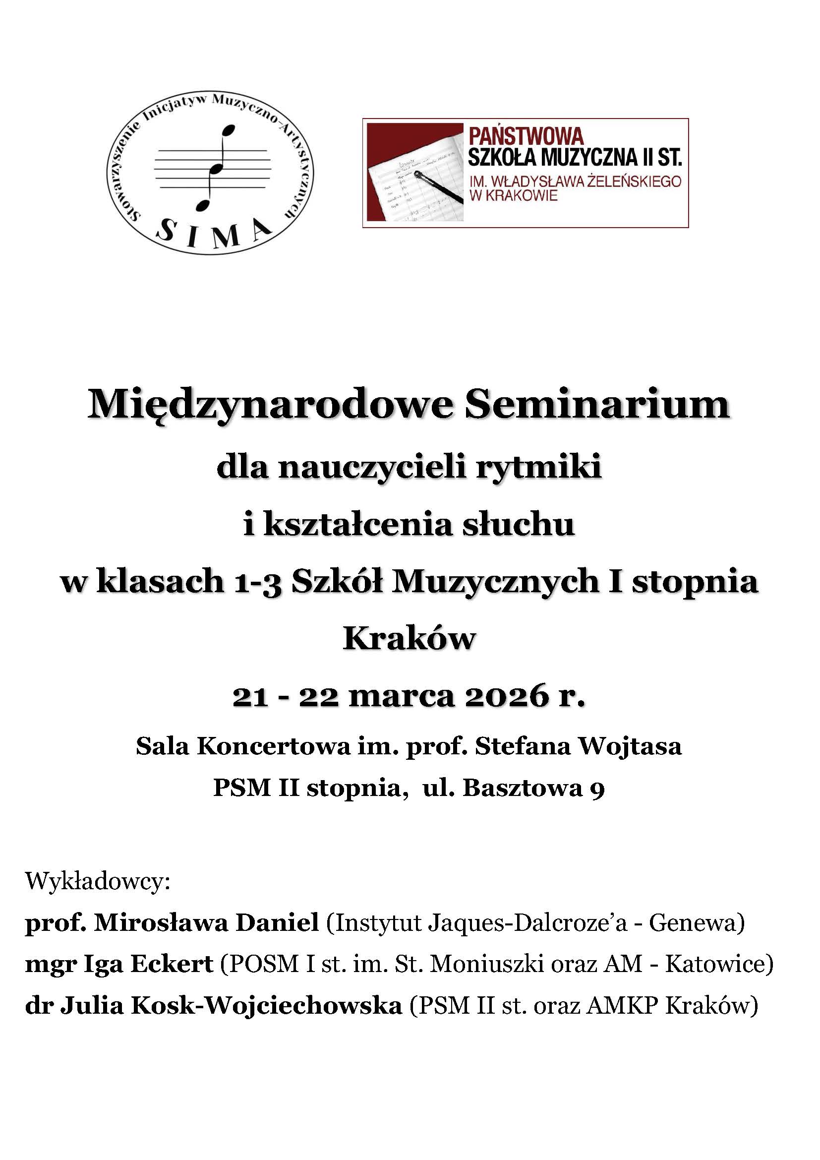 Międzynarodowe Seminarium dla nauczycieli rytmiki i kształcenia słuchu w klasach 1-3 Szkół Muzycznych I st. 21-22.03.2026