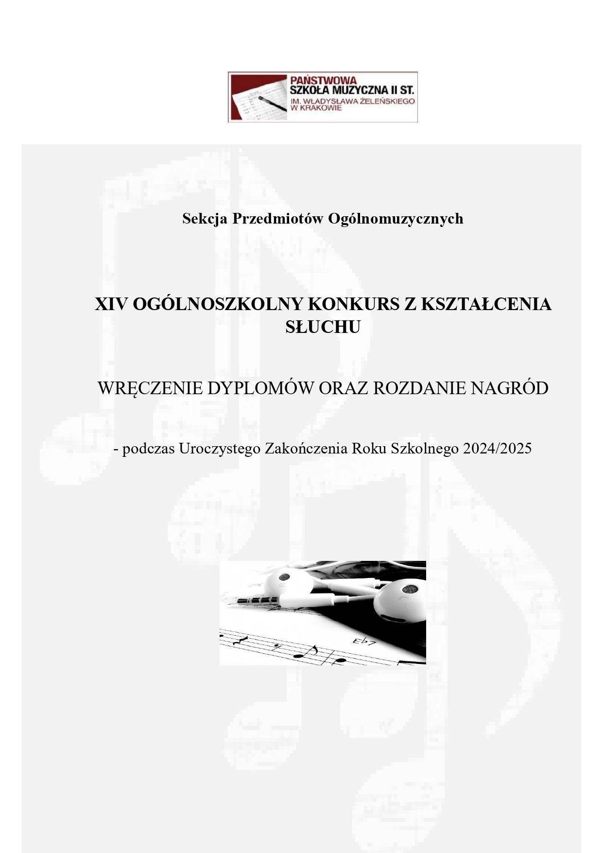 Organizatorzy XIV Ogólnoszkolnego Konkursu z Kształcenia Słuchu składają serdeczne podziękowania Fundacji Pro Musica Bona za ufundowanie nagród dla laureatów oraz wyróżnionych uczniów.