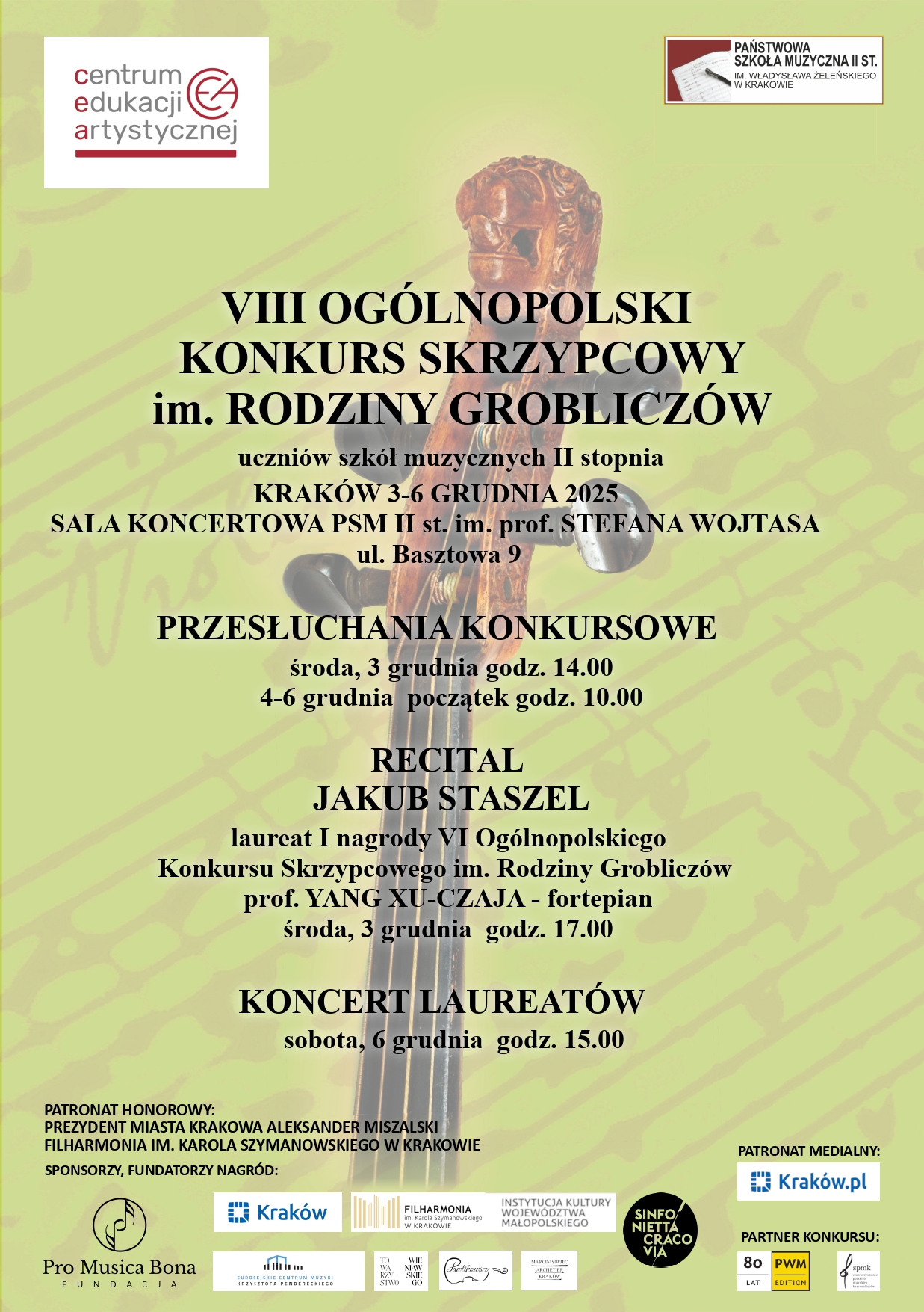 VIII Ogólnopolski Konkurs Skrzypcowy im. Rodziny Grobliczów Kraków, 3-6 grudnia 2025 r.