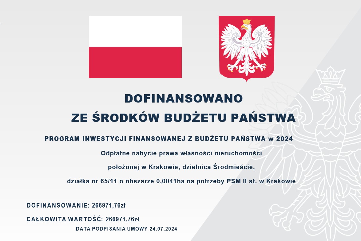 Nazwa zadania: Odpłatne nabycie prawa własności nieruchomości położonej w Krakowie, dzielnica Środmieście, działka nr 65/11 o obszarze 0,0041ha na potrzeby PSM II st. w Krakowie