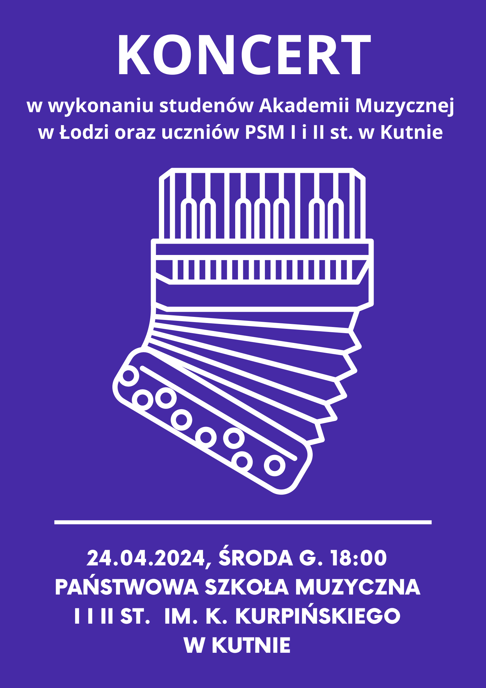 Zapraszamy na warsztaty akordeonowe oraz koncert akordeonowy w wykonaniu studentów Akademii Muzycznej w Łodzi i uczniów naszej szkoły