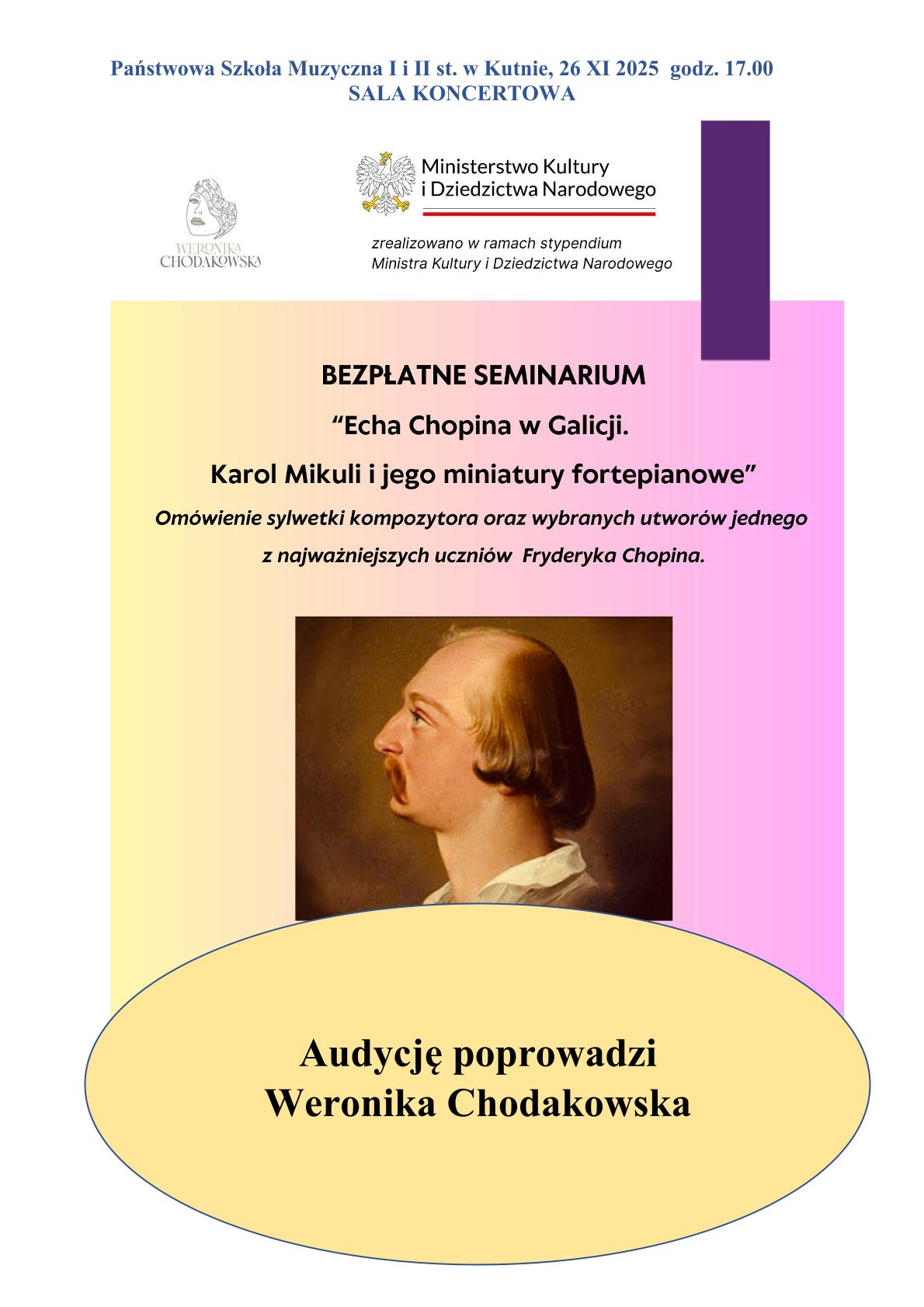 Zapraszamy na bezpłatne seminarium "Echa Chopina w Galicji, Karol Mikuli i jego miniatury fortepianowe"