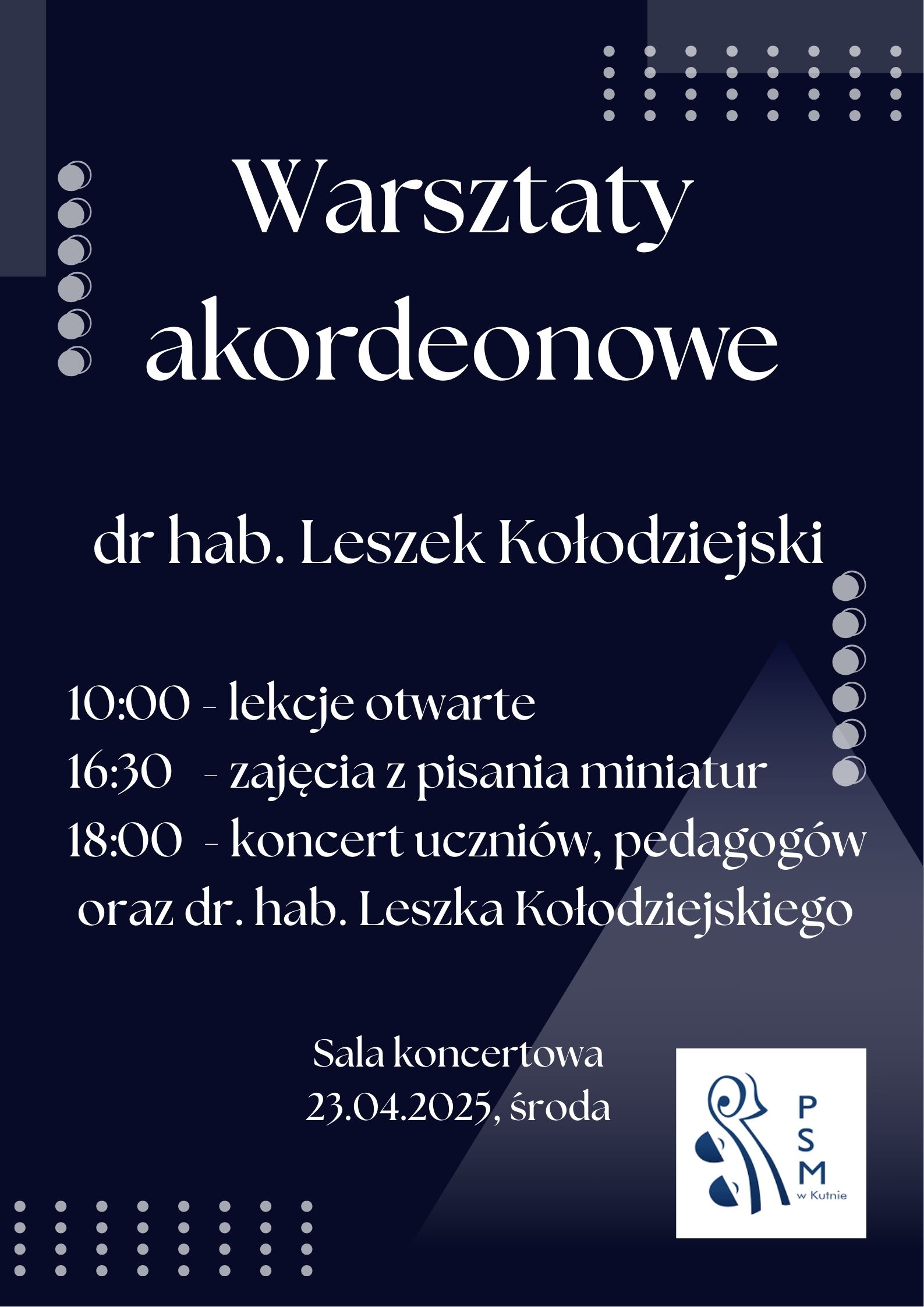 Warsztaty akordeonowe 16.04.2025 23 kwietnia 2025 r. godz. 10.00 - 18.00 Zdjęcia (2) Pokaż zdjęcie 1 z galerii. Pokaż zdjęcie 2 z galerii.
