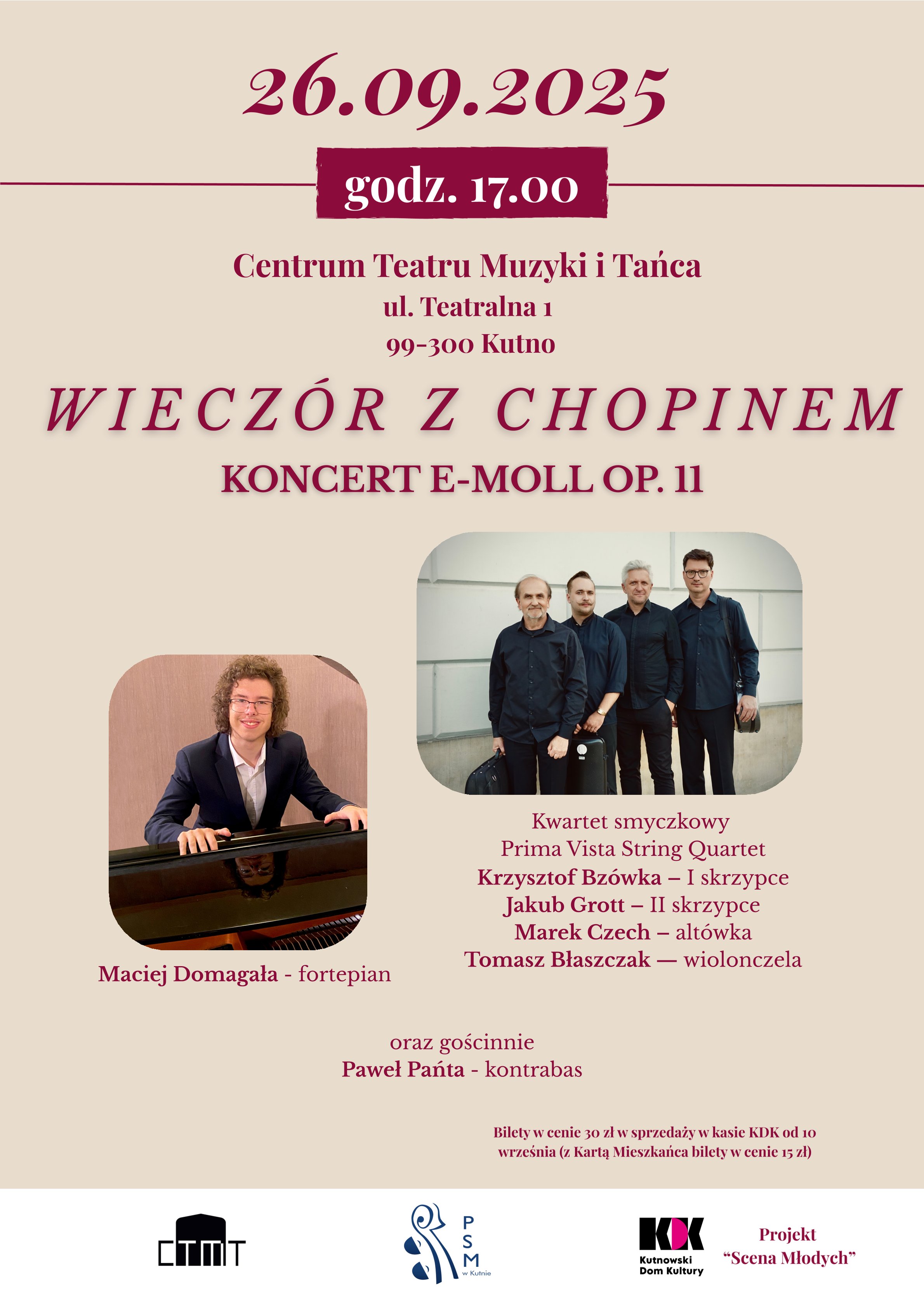 Zapraszamy na niezwykły koncert "Wieczór z Chopinem", na którym wystapi uczeń naszej szkoły - Maciej Domagała.