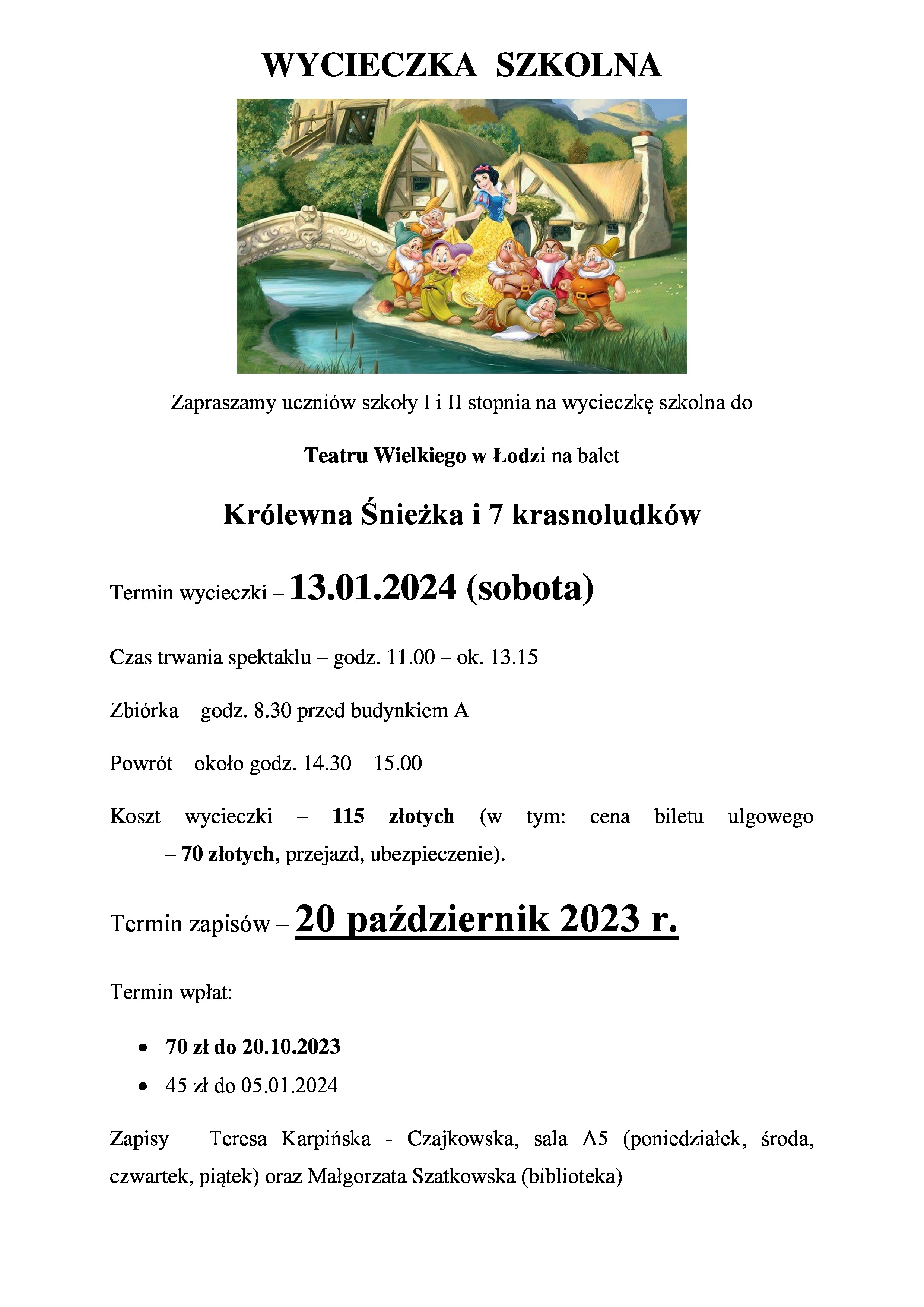 Wycieczka szkolna na balet "Królewna Śnieżka i 7 krasnoludków