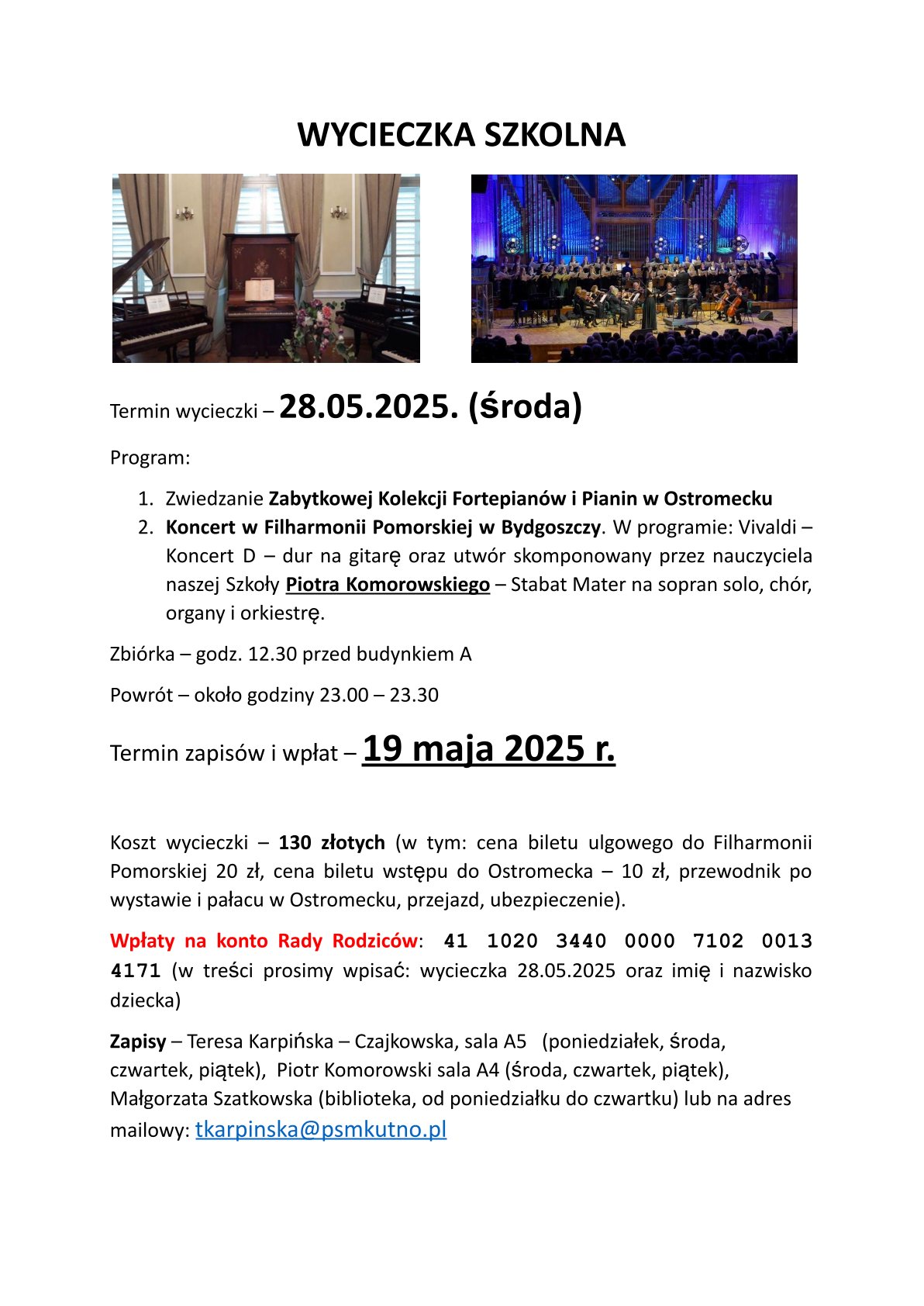 4171 (w treści prosimy wpisać: wycieczka 28.05.2025 oraz imię i nazwisko
