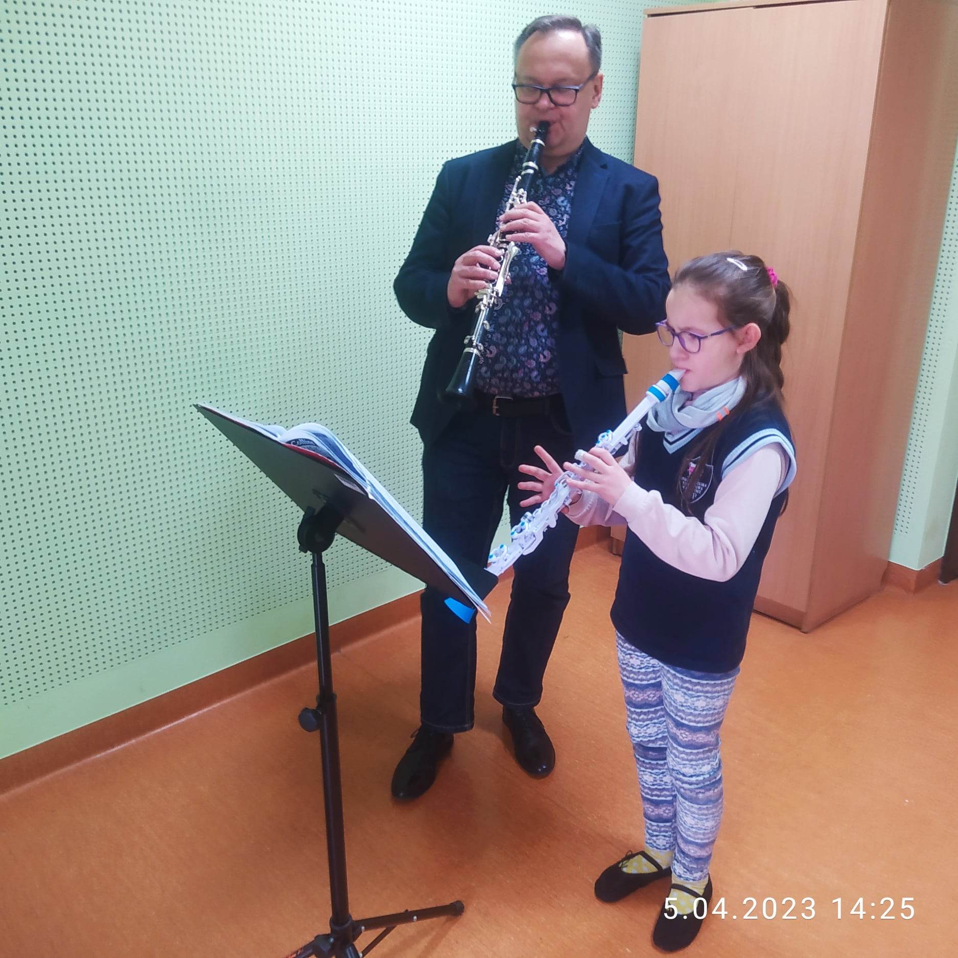 Dla naszych klarnecistów to była wspaniała okazja, aby poćwiczyć swój repertuar pod okiem tak wybitnego Pedagoga. Bardzo dziękujemy Panu Wieczorkowi za poprowadzenie lekcji warsztatowych z naszymi uczniami.