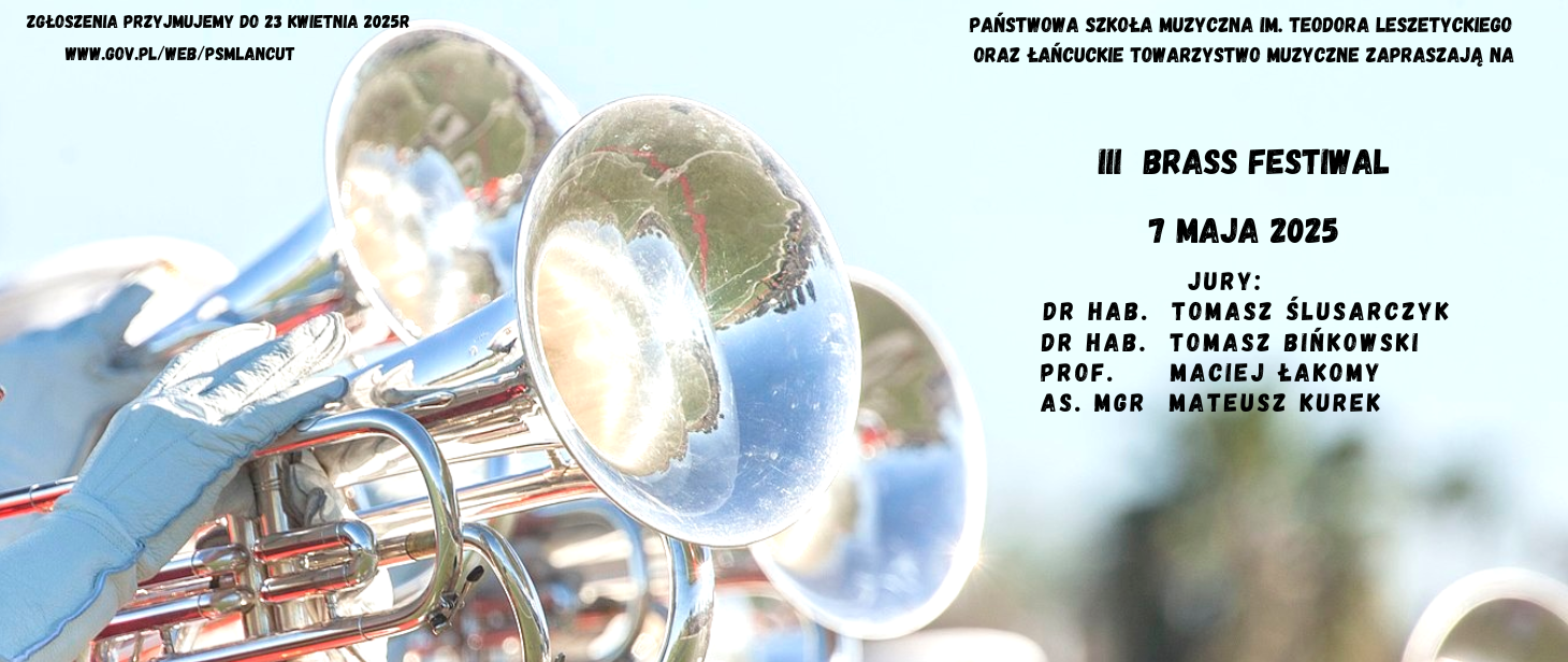 Państwowa Szkoła Muzyczna I st. im. Teodora Leszetyckiego oraz Łańcuckie Towarzystwo Muzyczne w dniu 7 maja 2025, będą organizatorami III BRASS FESTIWAL Ogólnopolskiego Konkursu Instrumentów Dętych Blaszanych, który jest rozbudowaną formułą i kontynuacją Konkursu Makroregionalnego. Mamy nadzieję, że nasz Konkurs będzie znakomitą promocją talentów wszystkich jego uczestników, a także prawdziwym ich świętem.
