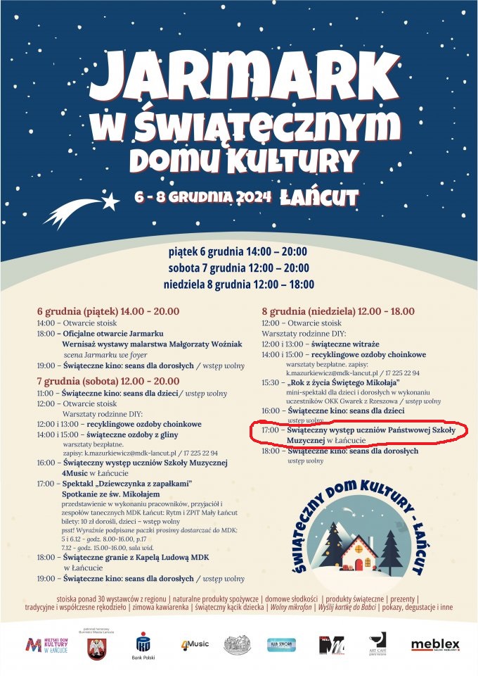 Serdecznie zapraszamy do MDK na Jarmark oraz do wysłuchania koncertu naszych uczniów.