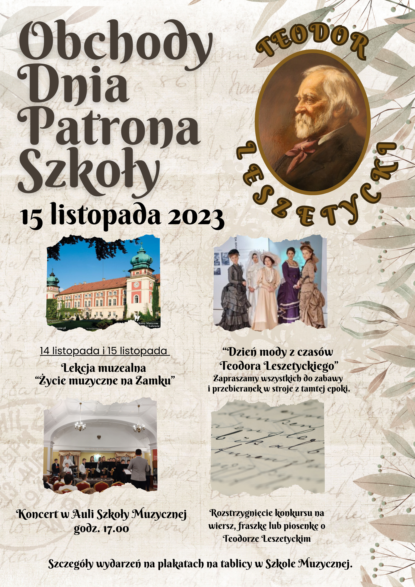 Natomiast Samorząd Uczniowski ogłosił „Dzień mody z czasów Teodora Leszetyckiego”. Zaprasza wszystkich do zabawy i przebieranek w stroje z tamtej epoki (mogą być tylko poszczególne elementy garderoby).