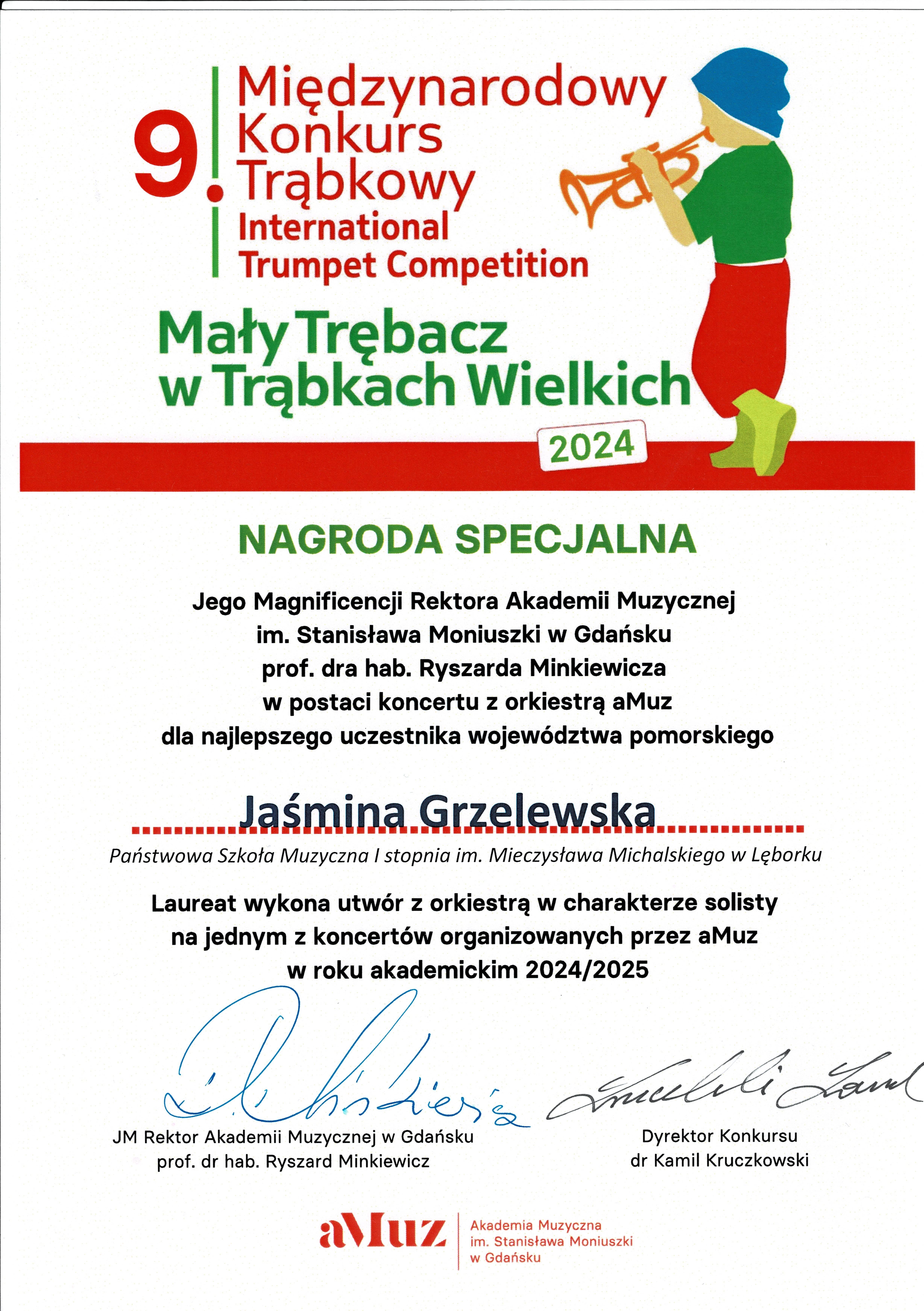 🏅 Nagroda Specjalna Magnificencji Rektora Akademii Muzycznej w Gdańsku, którą otrzymała Jaśmina Grzelewska za najlepszą prezentację i najwyższą ocenę w powiecie pomorskim! 😍