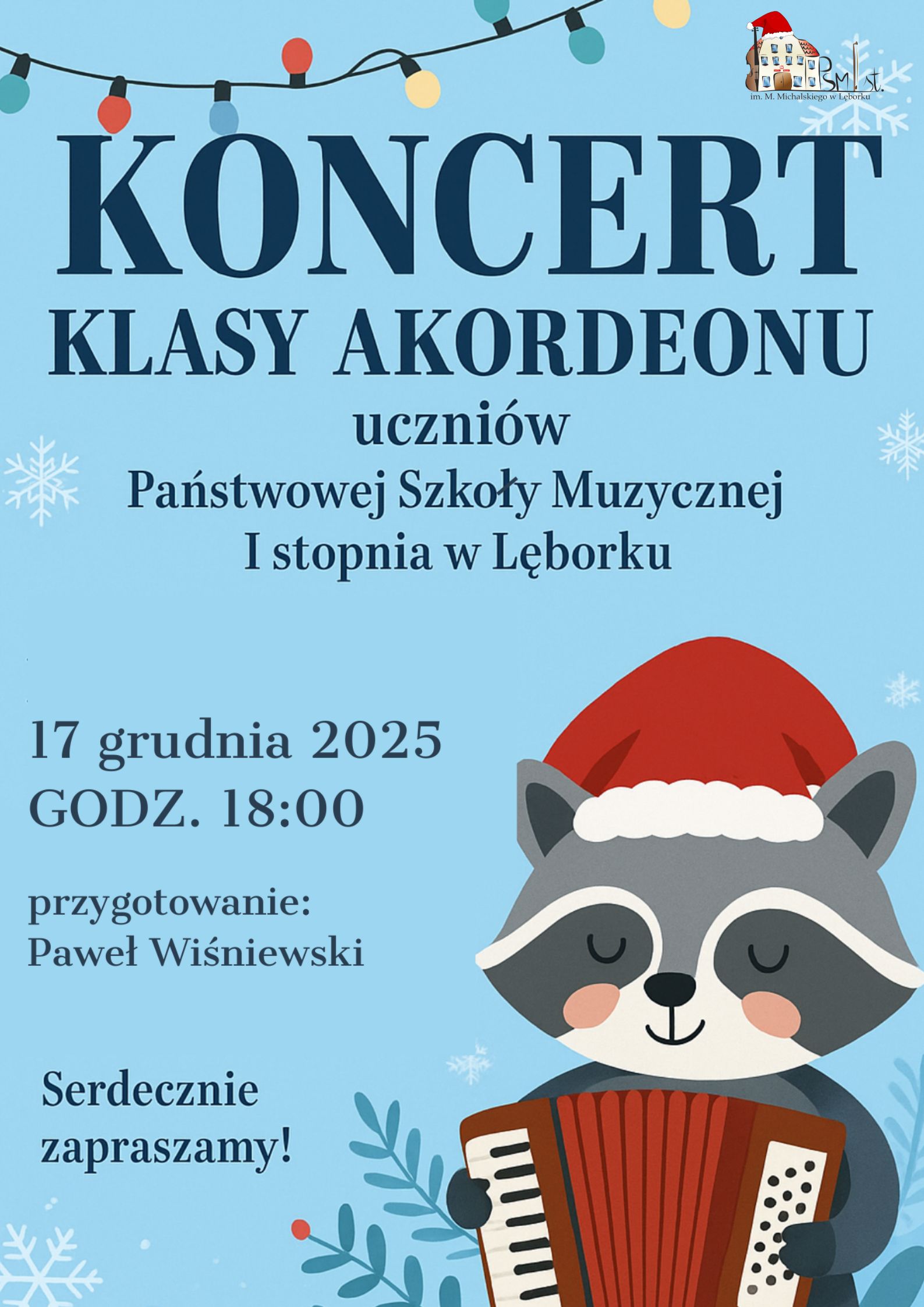 17 grudnia br. po wysłuchaniu brzmienia fletu i gitary, o godz. 18:00 zapraszamy Państwa na koncert klasy akordeonu, który będzie muzycznym dopełnieniem tego dnia.