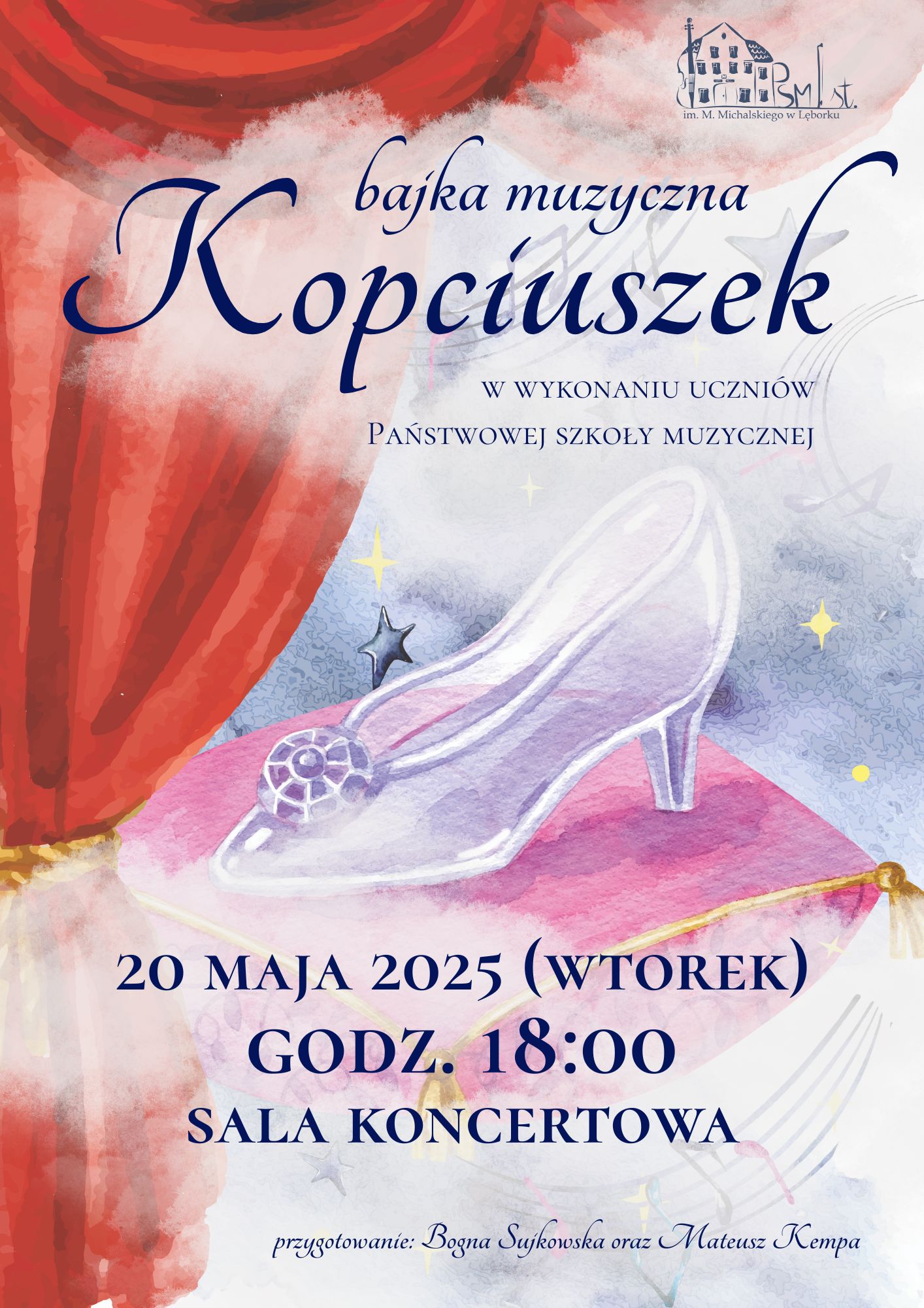 W następnym tygodniu odbędą się koncerty rekrutacyjne pt. "Kopciuszek" w wykonaniu klasy III cyklu 6-letniego przygotowanej przez p. Bognę Sujkowską oraz p. Mateusza Kempę.