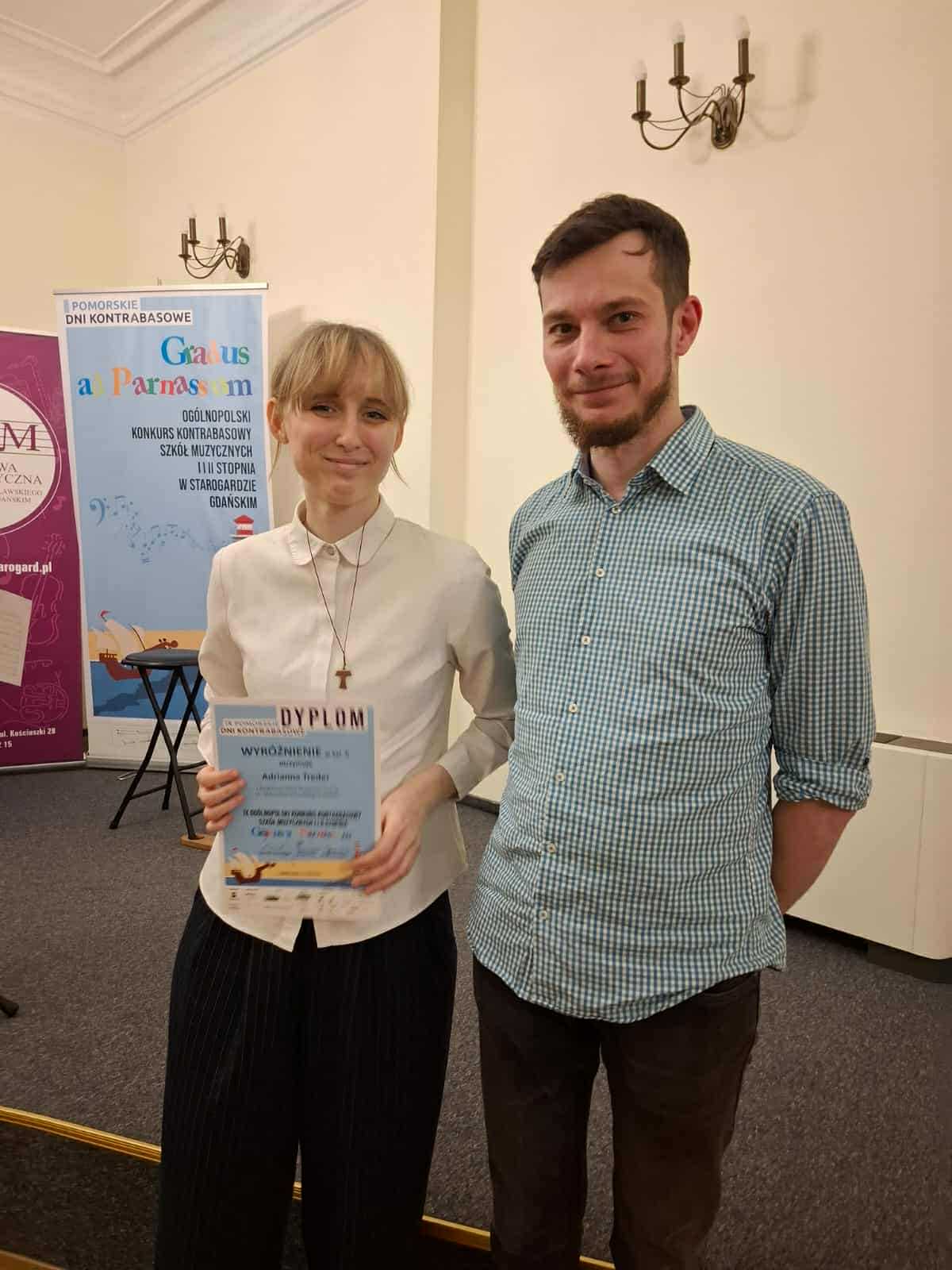 Z ogromną radością informujemy, że uczennica Adrianna Treder z klasy kontrabasu p. Tomasza Denkiewicza zdobyła wyróżnienie na IX Ogólnopolskim Konkursie Kontrabasowym Szkół Muzycznych I i II stopnia "Gradus ad Parnassum", który odbył się 28 listopada br. w Starogardzie Gdańskim.