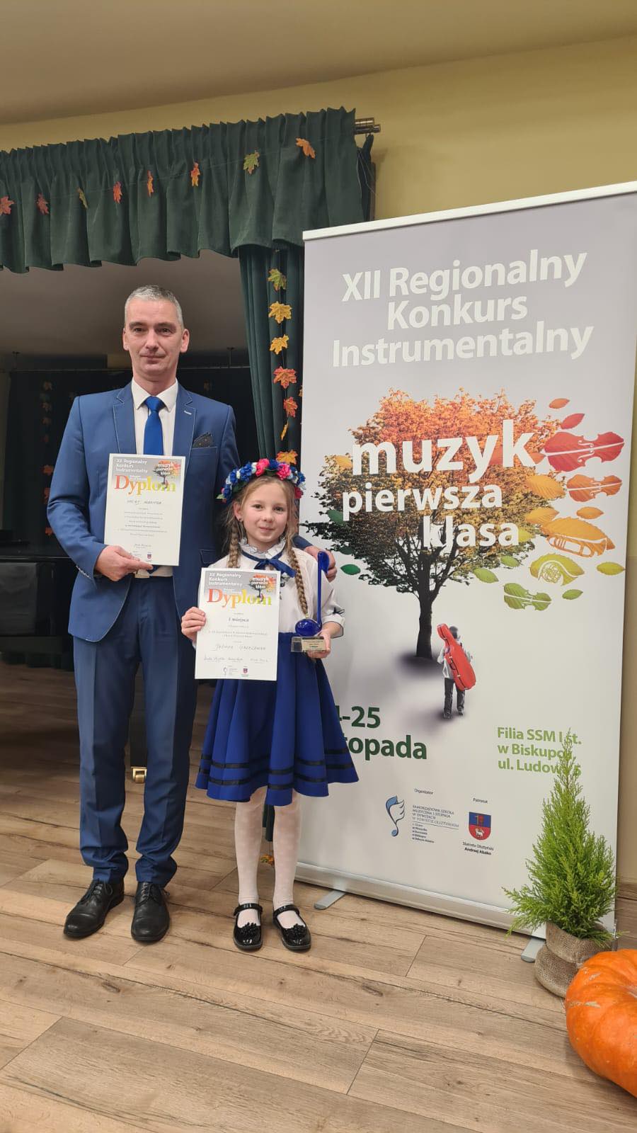 25 listopada 2023 r. Jaśmina Grzelewska uczennica klasy trąbki P. Mirosława Pawlaka otrzymała I miejsce na XII Regionalnym Konkursie Instrumentalnym "Muzyk Pierwsza Klasa" w Biskupcu.