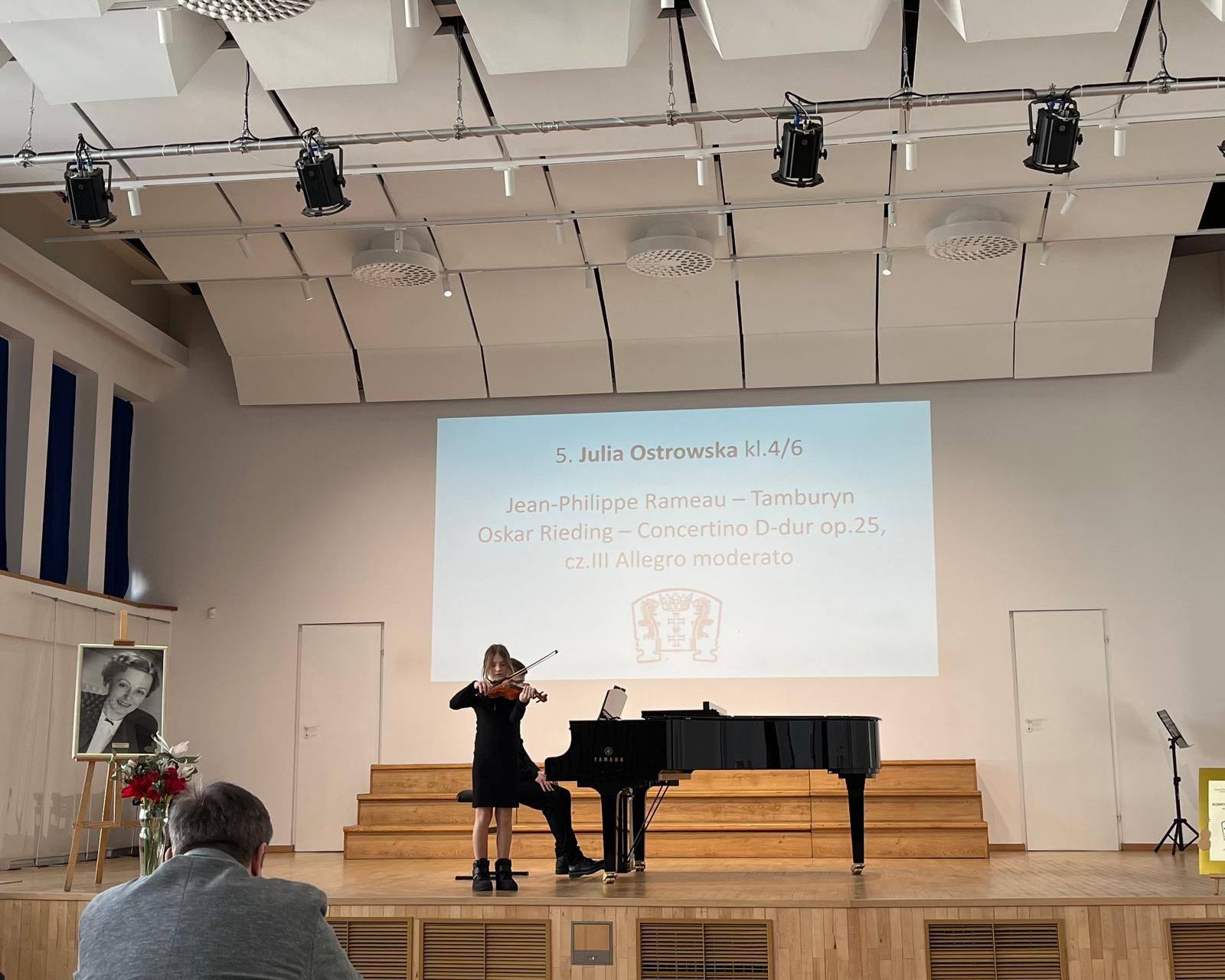 Z dumą informujemy, że Julia Ostrowska, uczennica klasy skrzypiec p. Mileny Rogowicz, została wyróżniona na XII Gdańskim Konkursie Skrzypcowym im. Anity Romanowskiej.