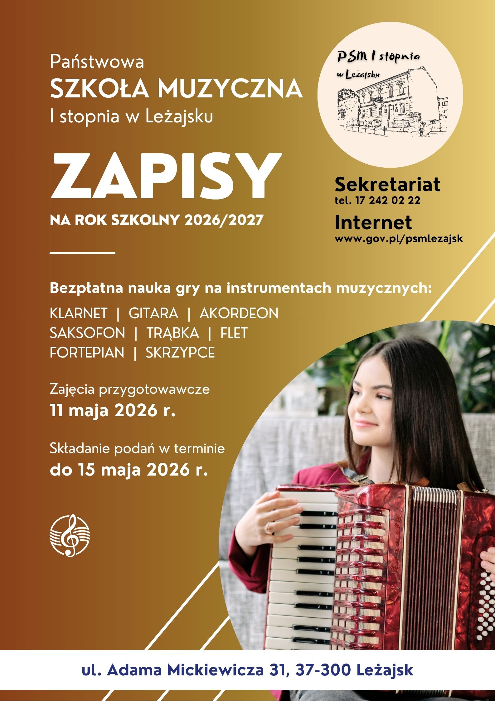 Dodatkowych informacji udziela sekretariat PSM I st. w Leżajsku