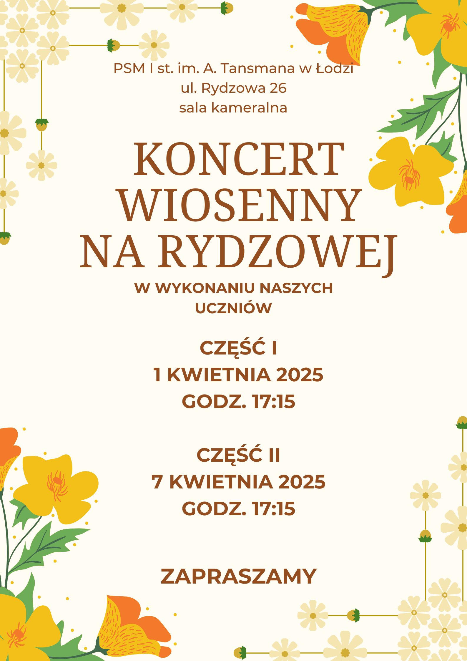 Serdecznie zapraszamy na Koncert Wiosenny w wykonaniu uczniów z lokalizacji szkoły przy ulicy Rydzowej.