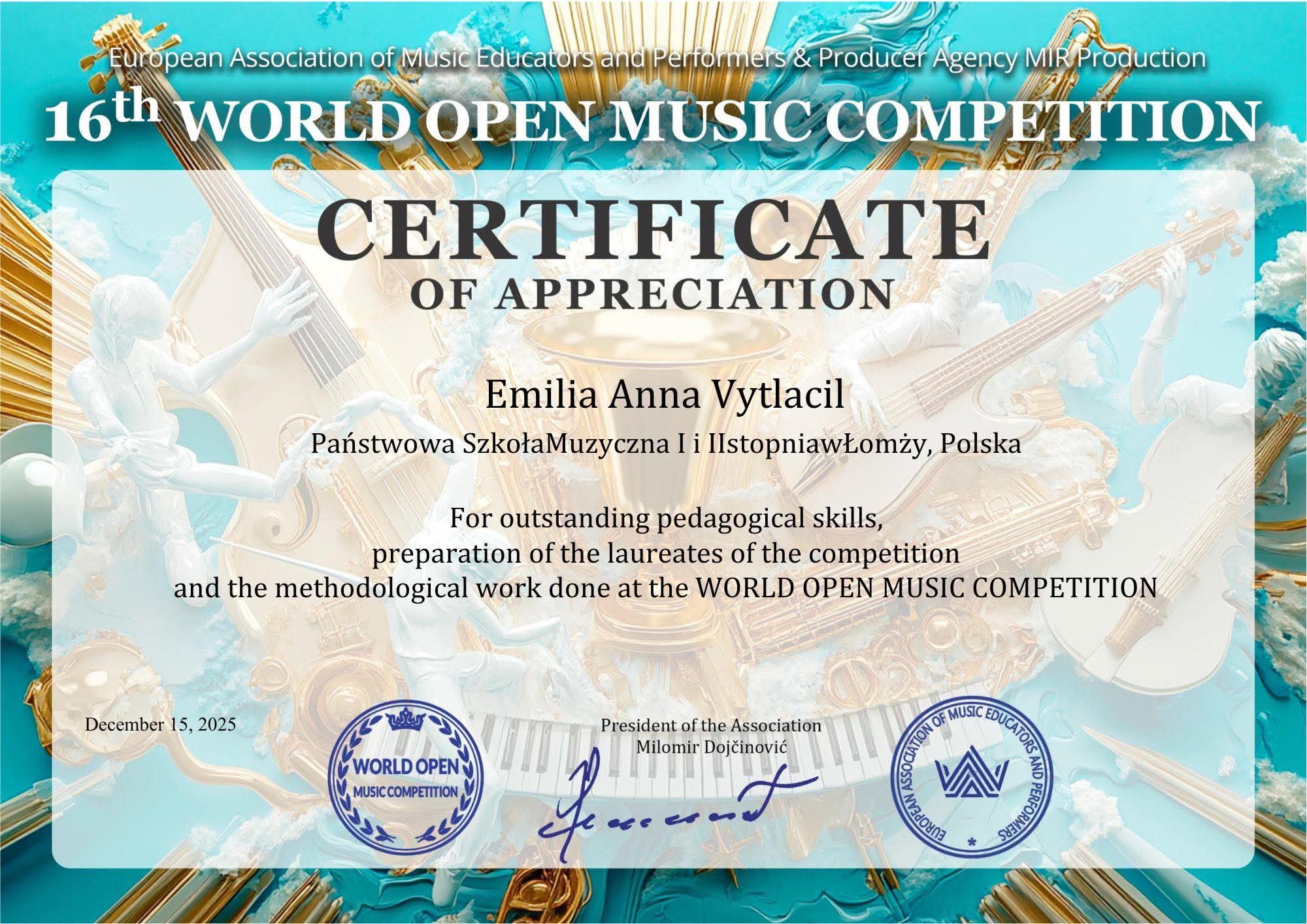 Jak co roku nasi uczniowie startowali w World Open Music Competition (Serbia). I jak co roku zdobyli nagrody.