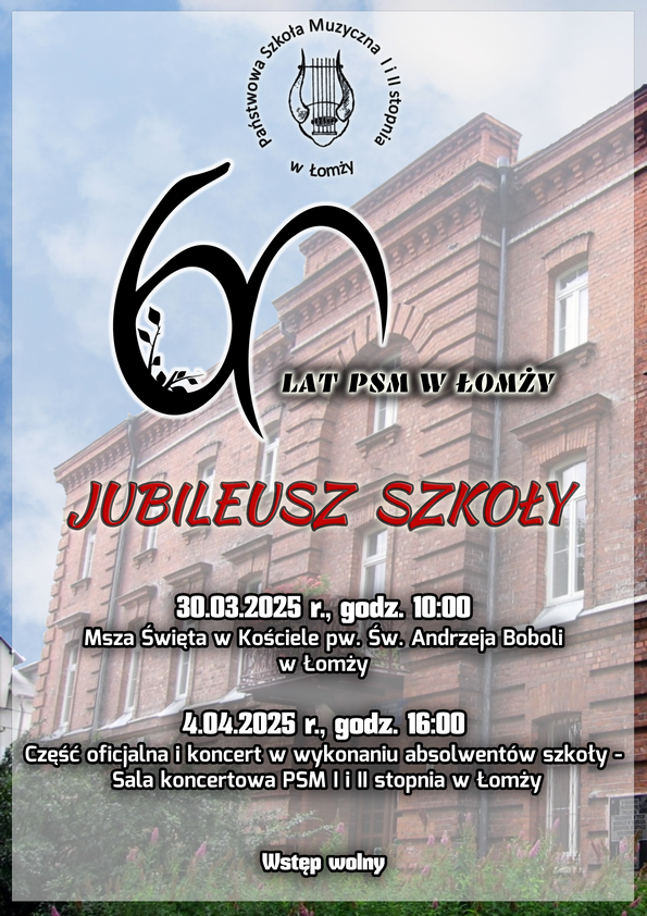 04 kwietnia o godzinie 16:00 w sali koncertowej PSM koncert absolwentow szkoły i centralne uroczystości jubileuszowe.