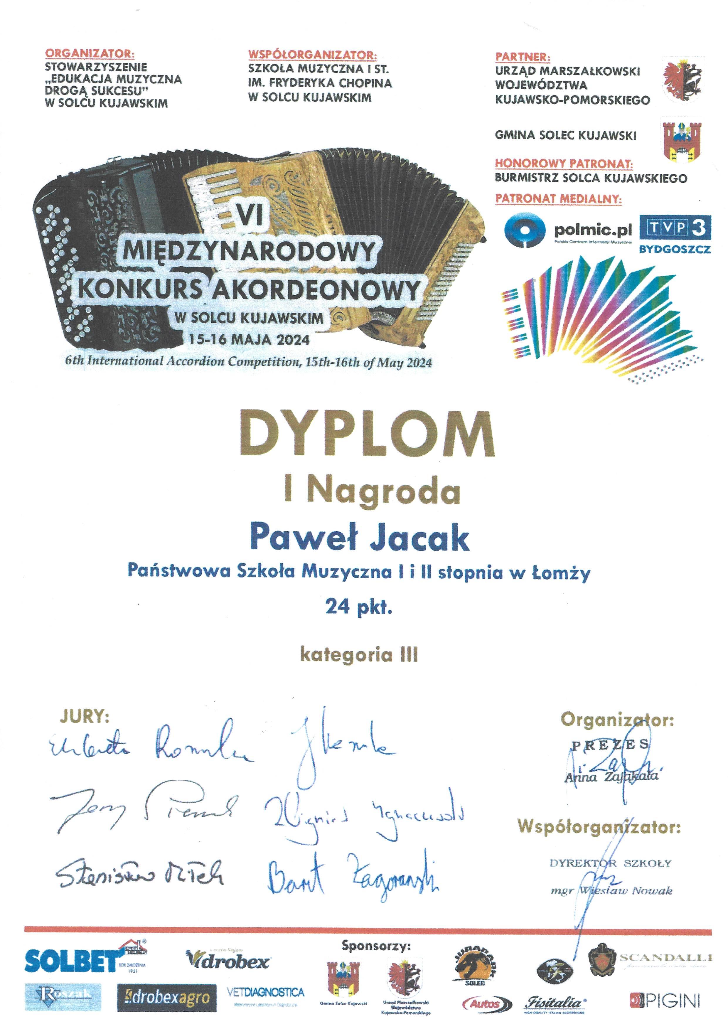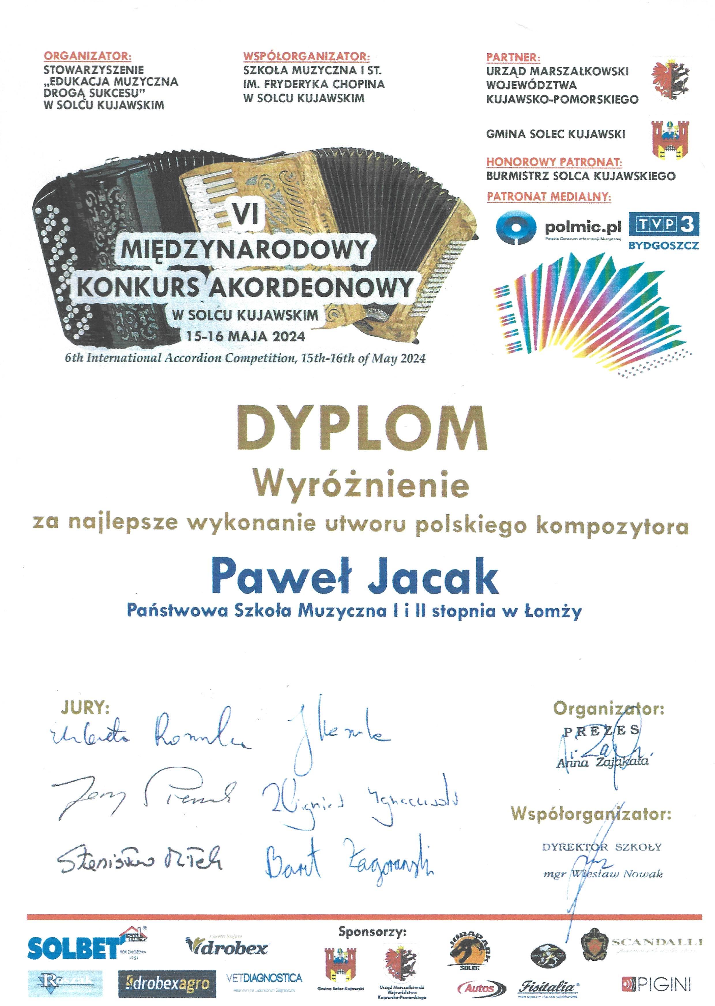 Obficie nagrodzono Łomżyniaków na VI Międzynarodowym Konkursie Akordeonowym w Solcu Kujawskim, ktory odbyl się w dniach 15-16 maja 2024 r.