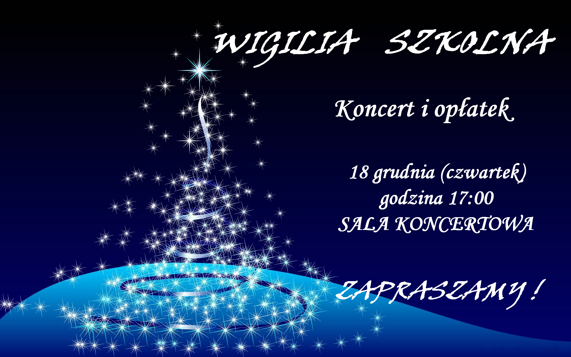 Zapraszamy wszystkich nauczycieli, uczniów i rodziców na tradycyjną szkolną wigilię połączoną z krótkim koncertem i łamaniem się opłatkiem.