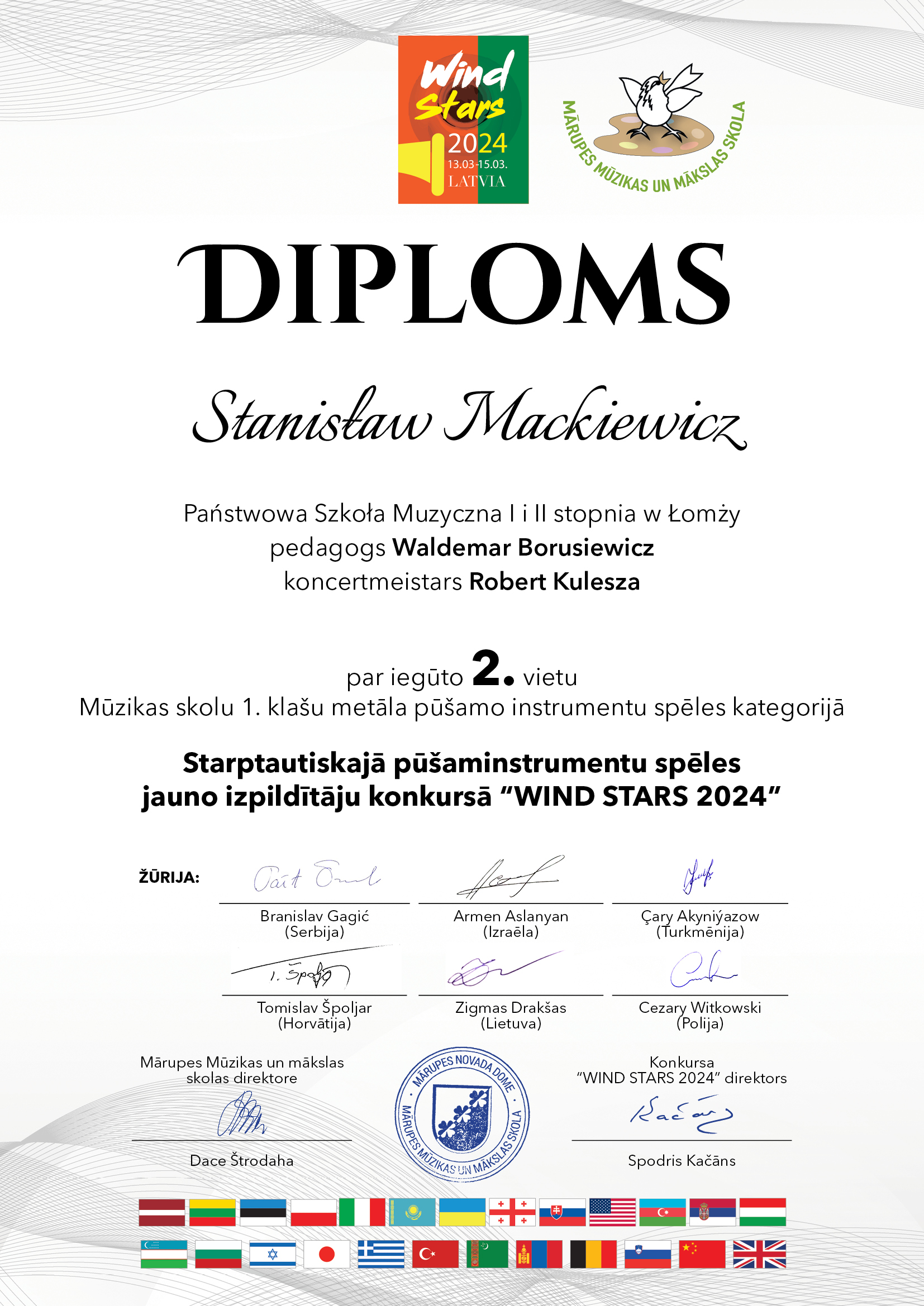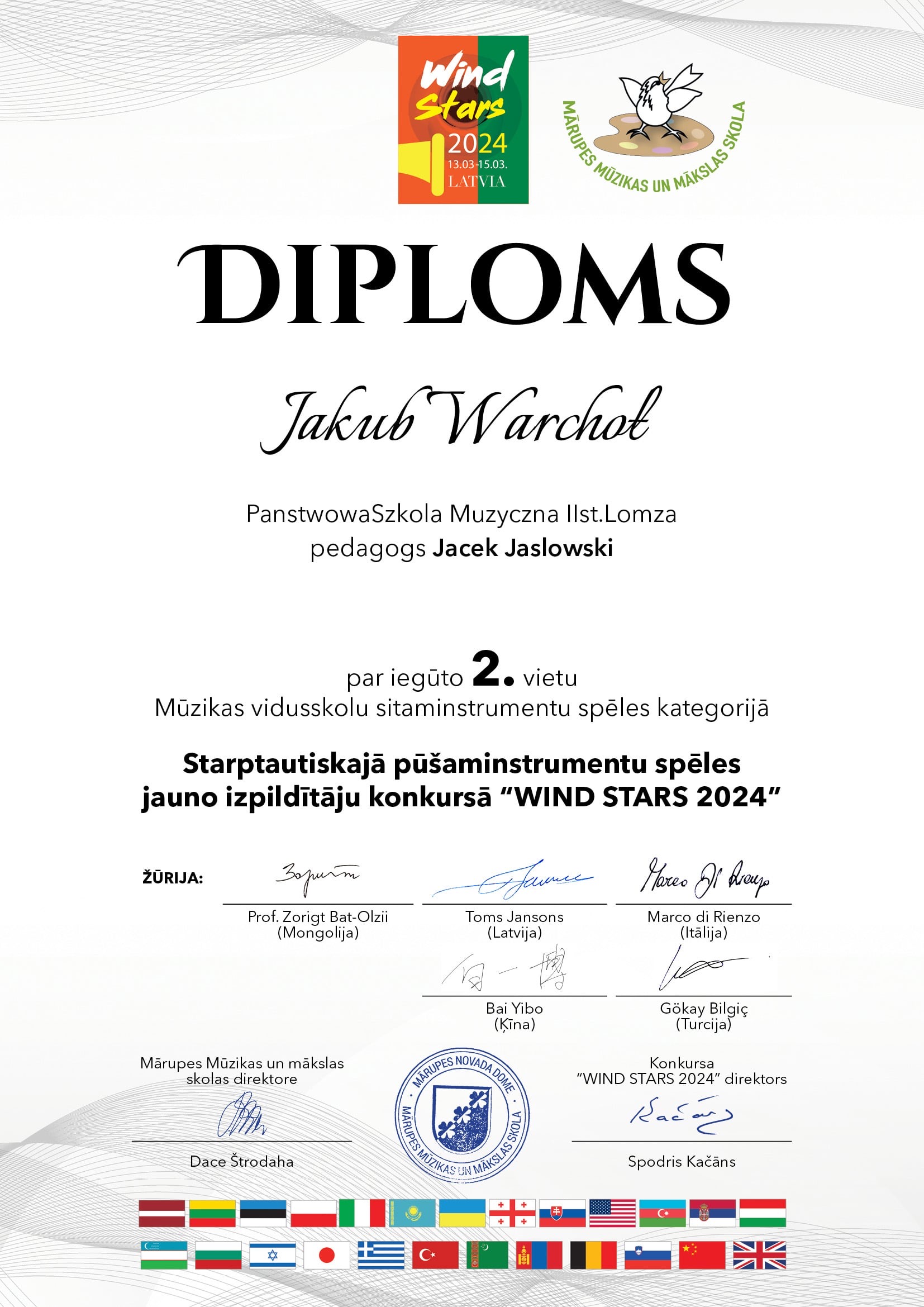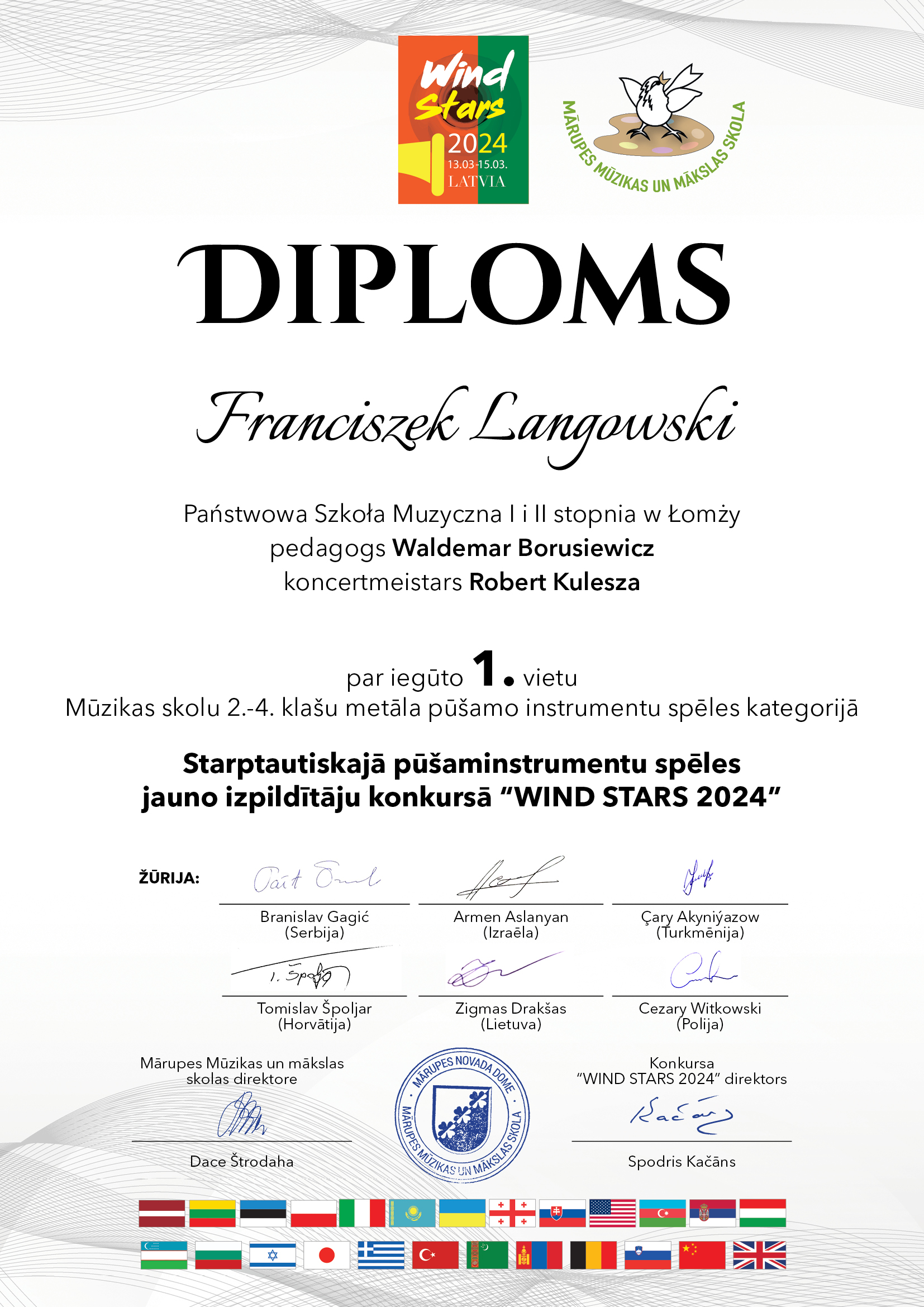 W odbywającym się na Łotwie konkursie Wind Stars 2024 brała udział trójka naszych uczniów. Wszyscy zdobyli nagrody. I tak: