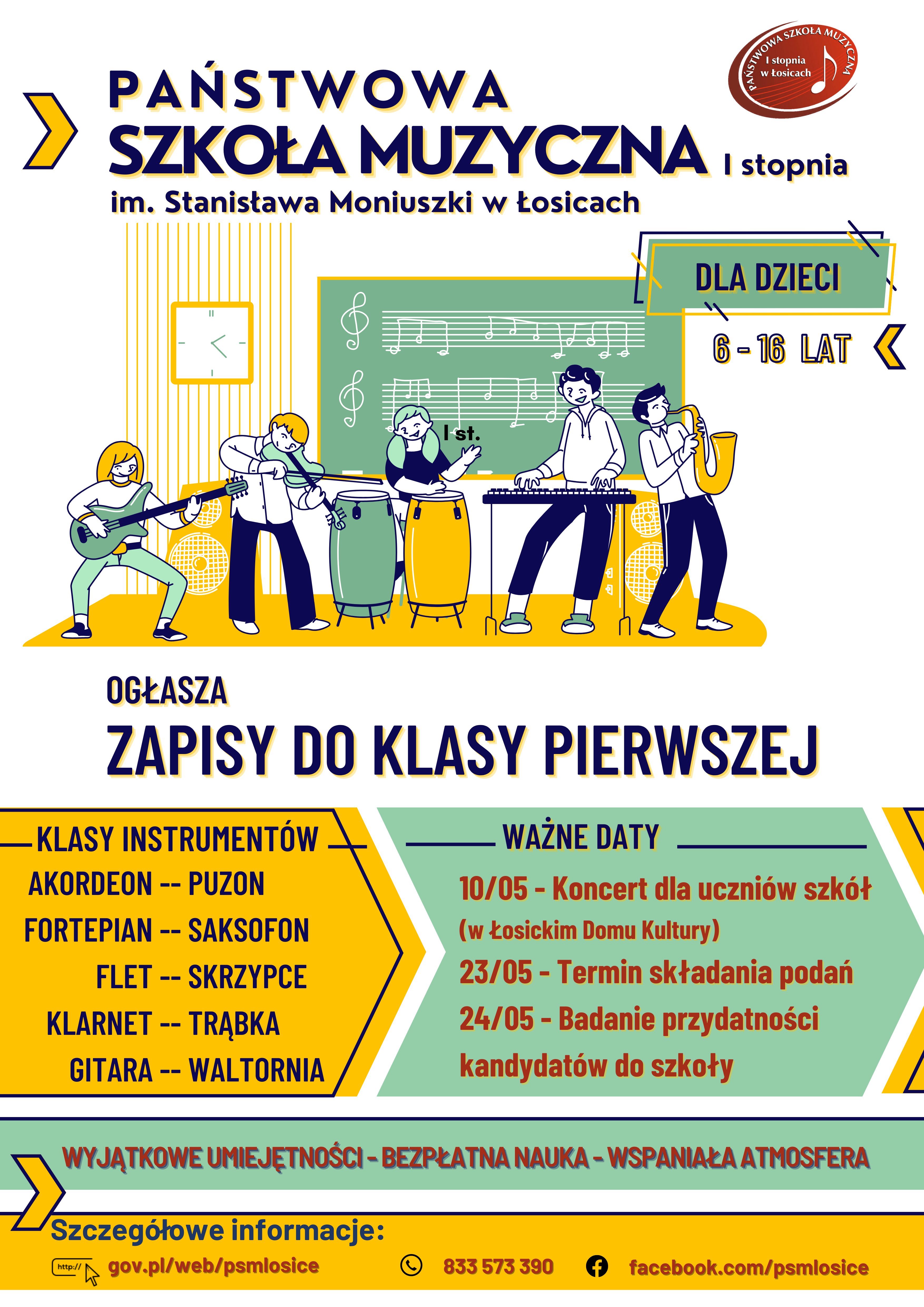 Wypełniony wniosek (w załączniku) wraz z wymaganymi dokumentami należy złożyć w sekretariacie szkoły lub przesłać na adres mailowy szkoły psm.losice@post.pl do 23 maja 2024 r.