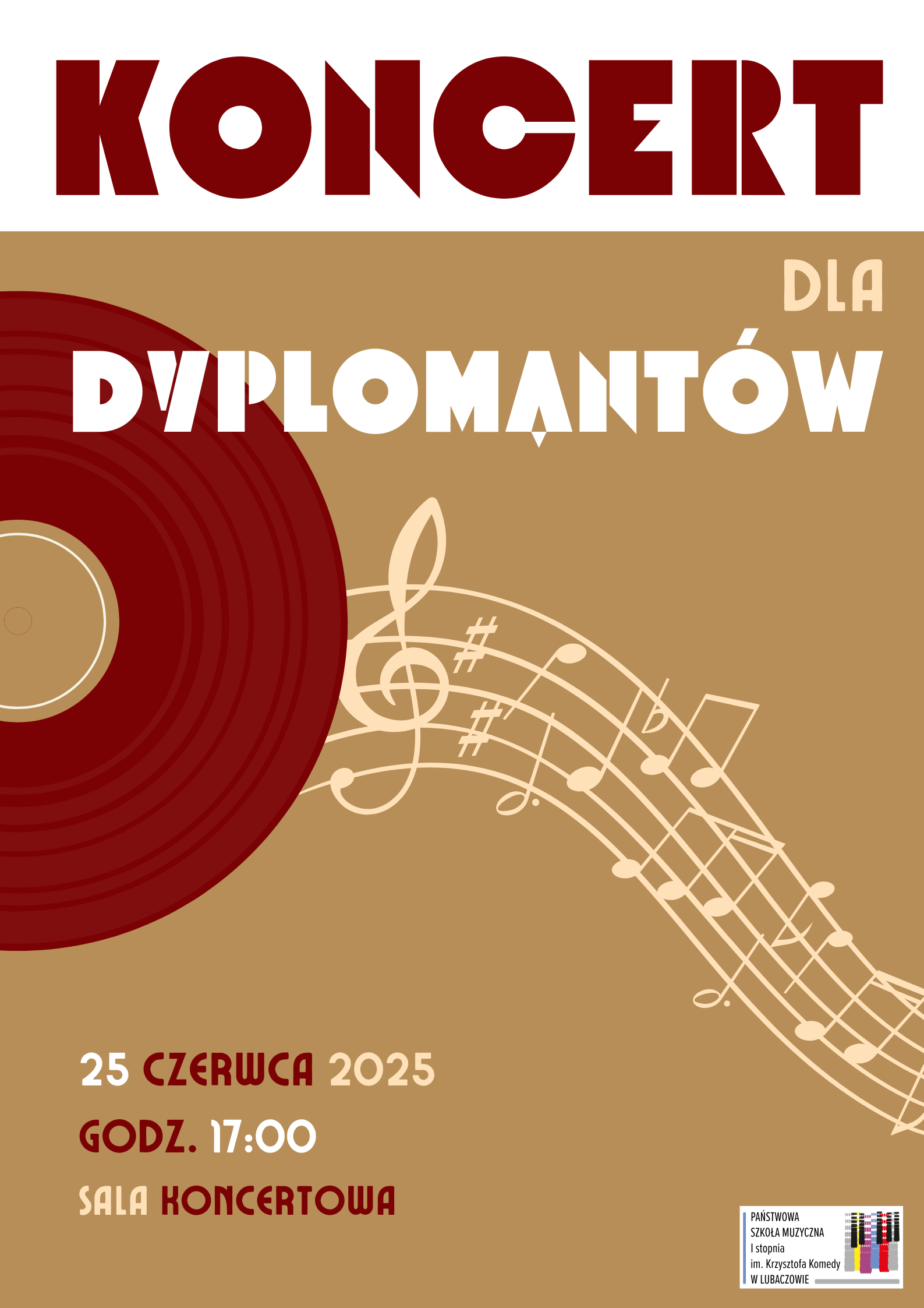 Zapraszamy na koncert dla tegorocznych dyplomantów, który odbędzie się 25 czerwca 2025r. o godz. 17:00 w sali koncertowej.