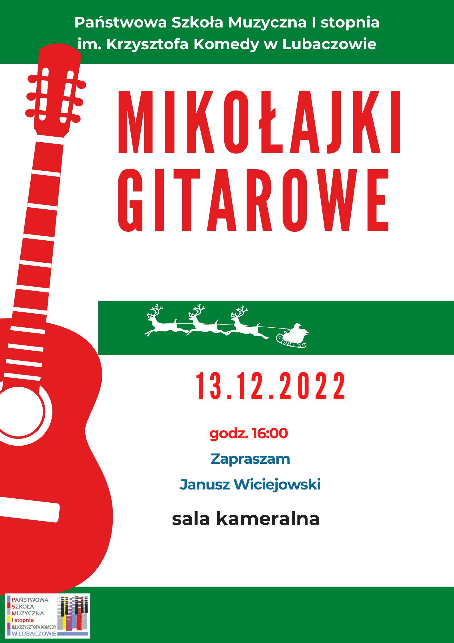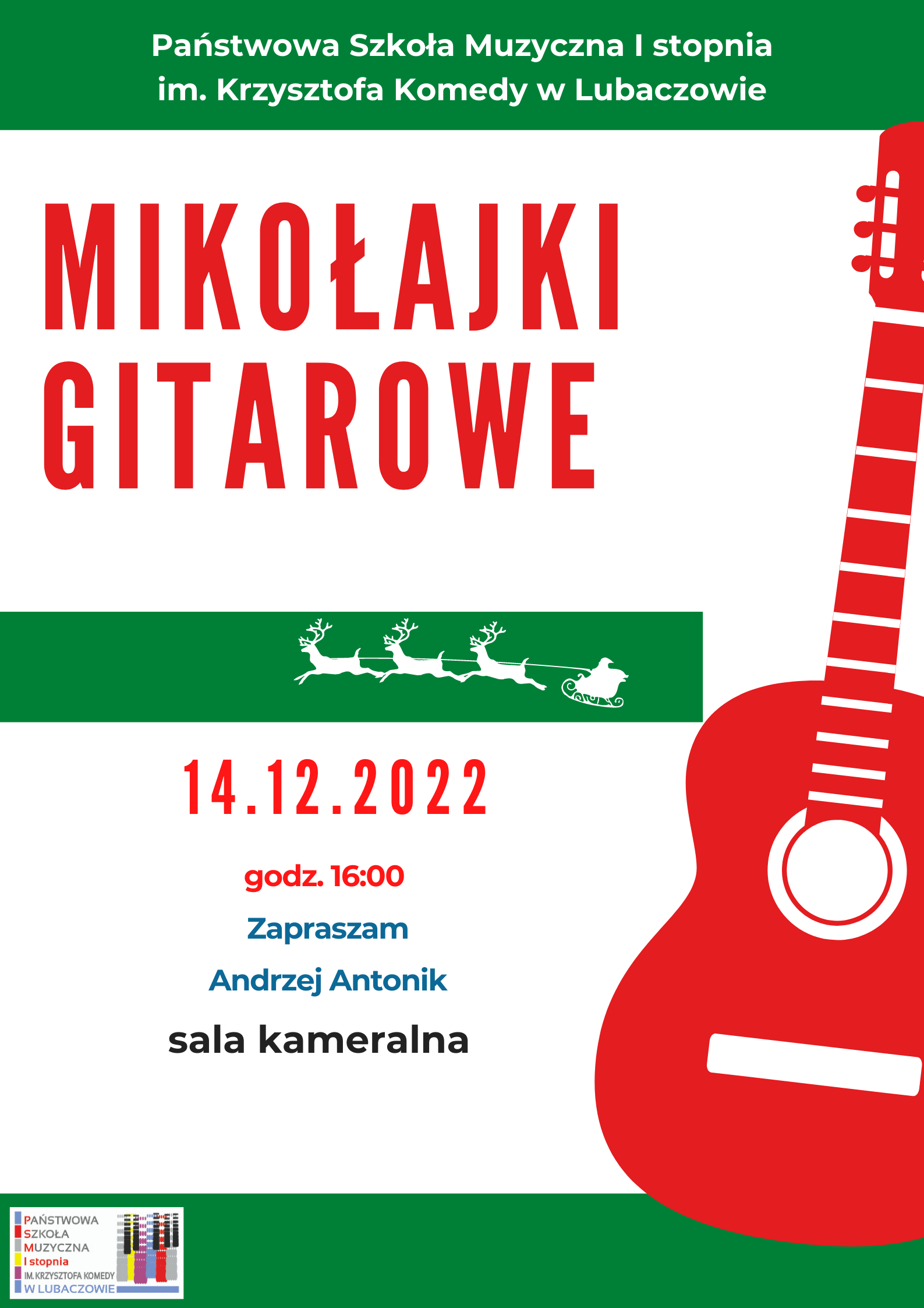 Nauczyciele Pan Andrzej Antonik i Janusz Wiciejowski zapraszają na Mikołajki gitrowe w wykonaniu swoich uczniów: