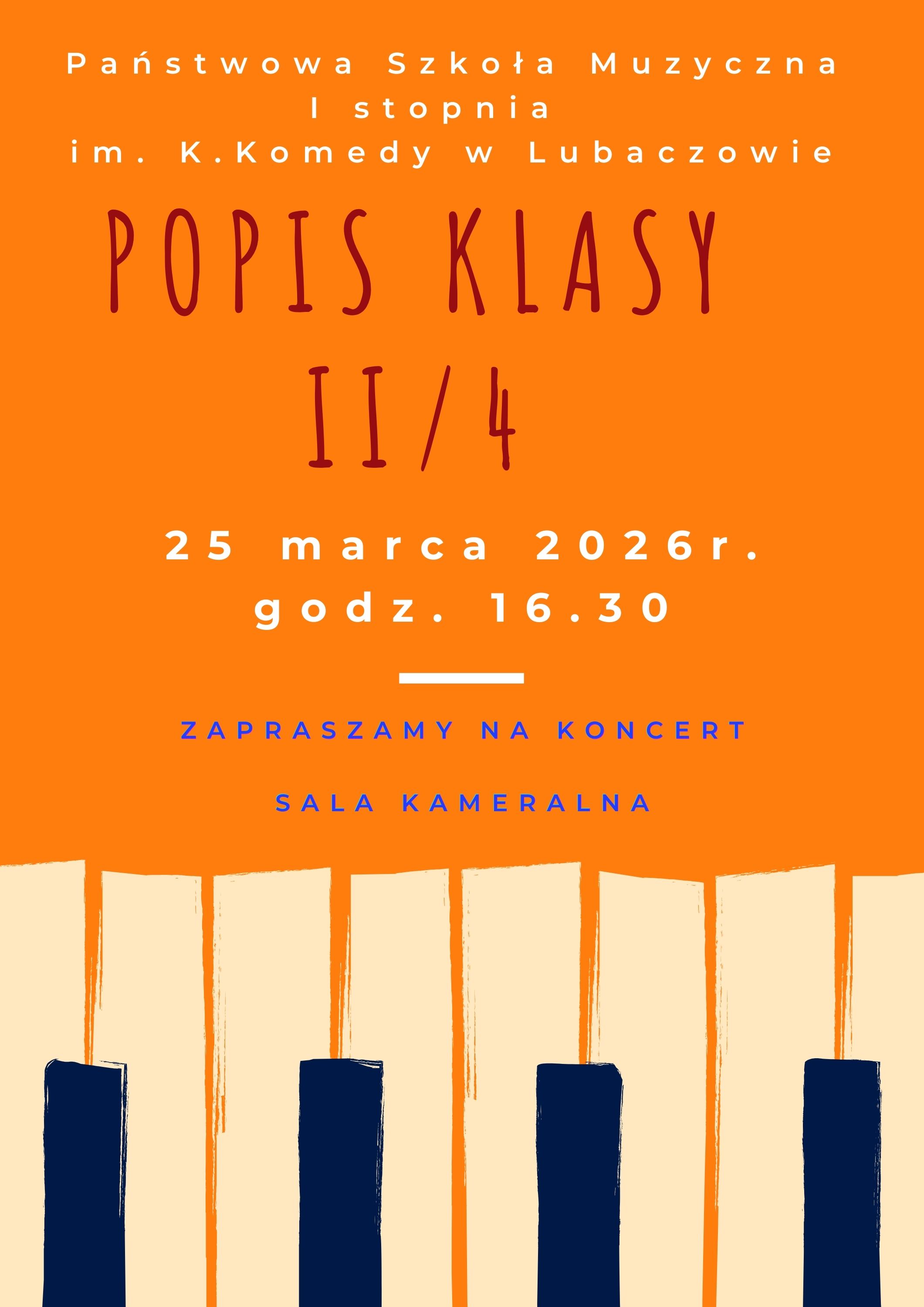 Zapraszamy na popis uczniów klasy II cyklu czteroletniego, który odbędzie się 25 marca 2026 r. o godz. 16:30 w sali kameralnej.