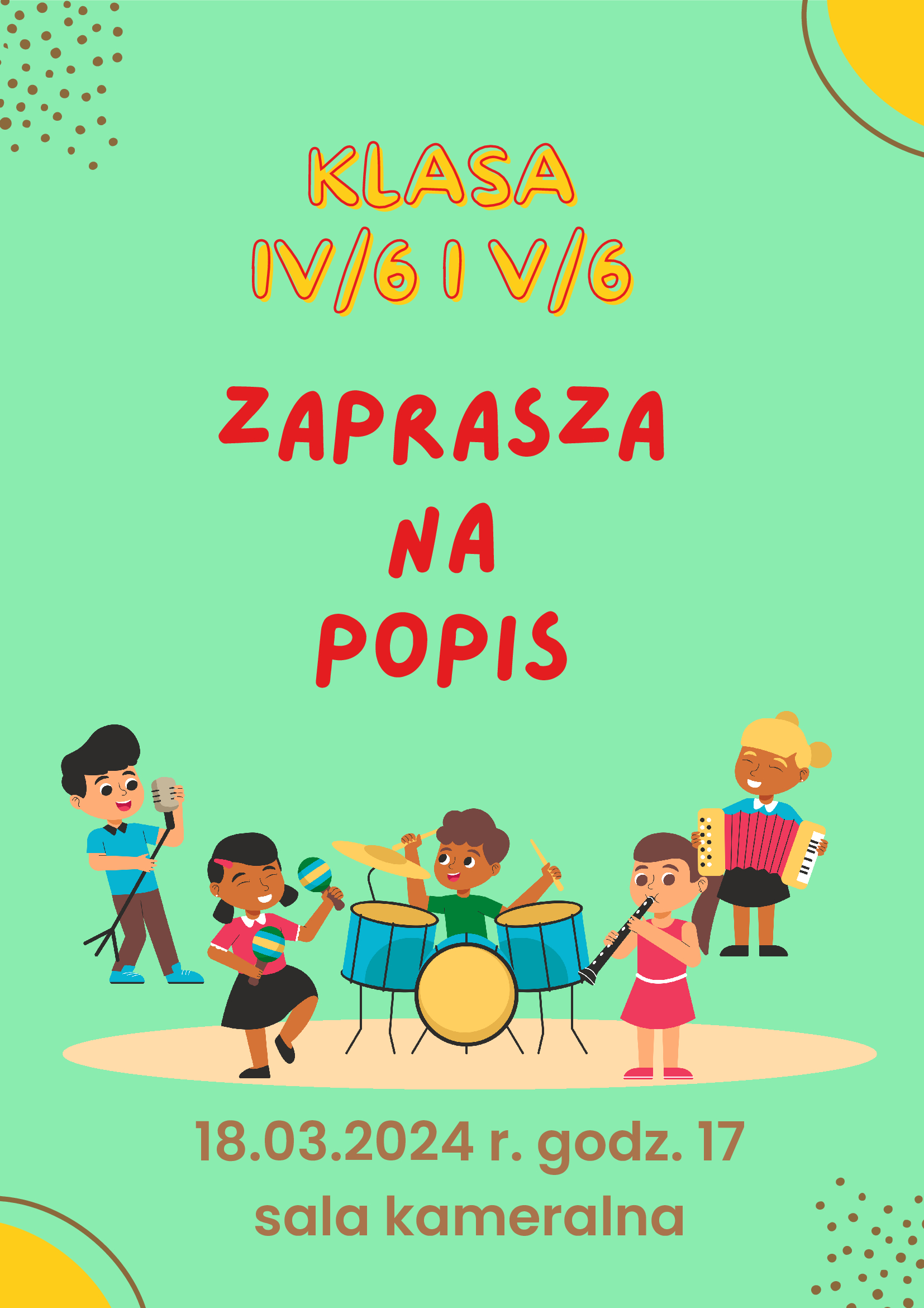 Zapraszamy na popis w wykonaniu uczniów klasy IV i V cyklu sześcioletniego, który odbędzie się 18 marca 2024 r. o godzinie 17:00 w sali kameralnej.