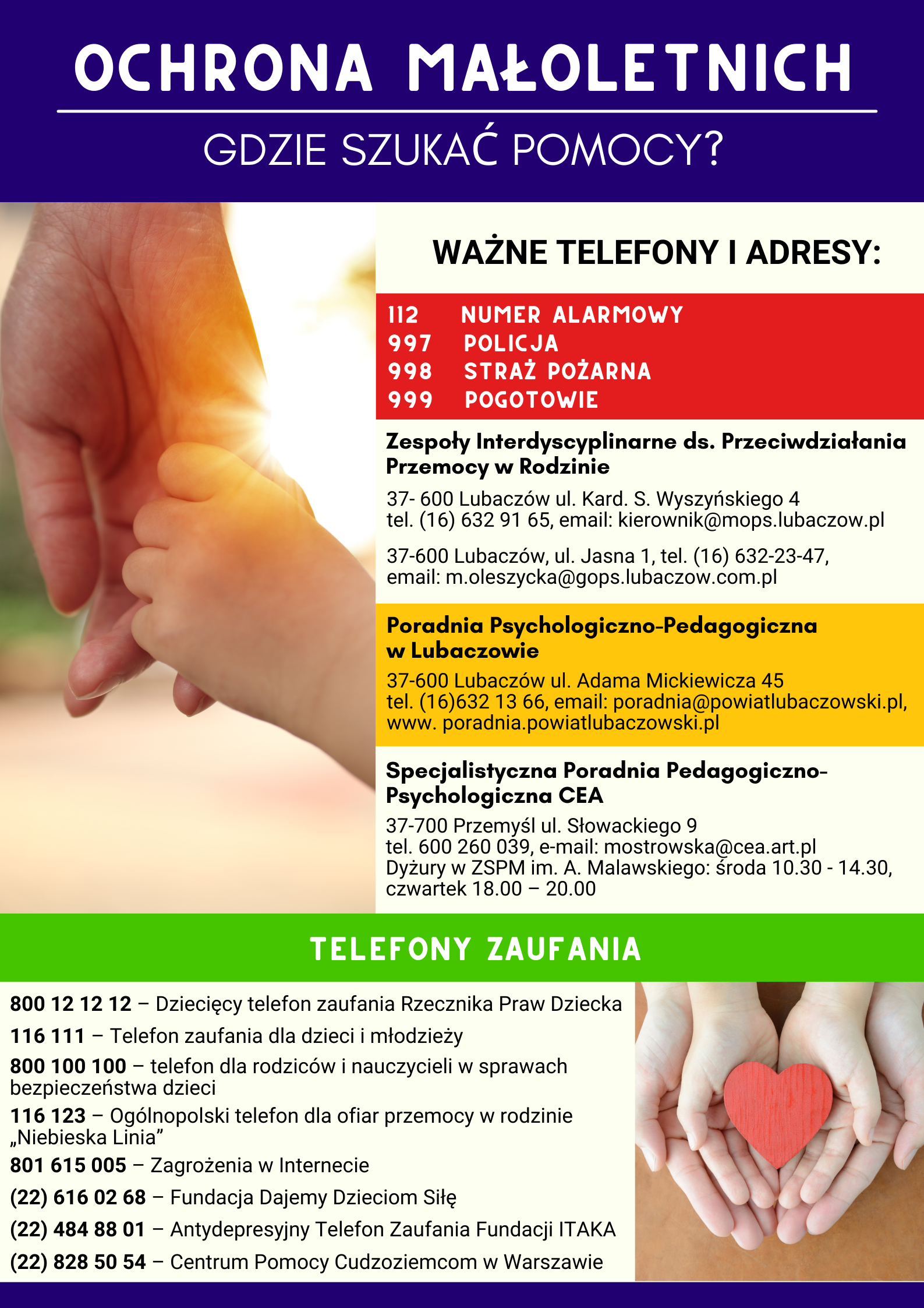 - małoletni wiedzą, do kogo się zwracać i prosić o pomoc w sytuacjach dla nich trudnych;