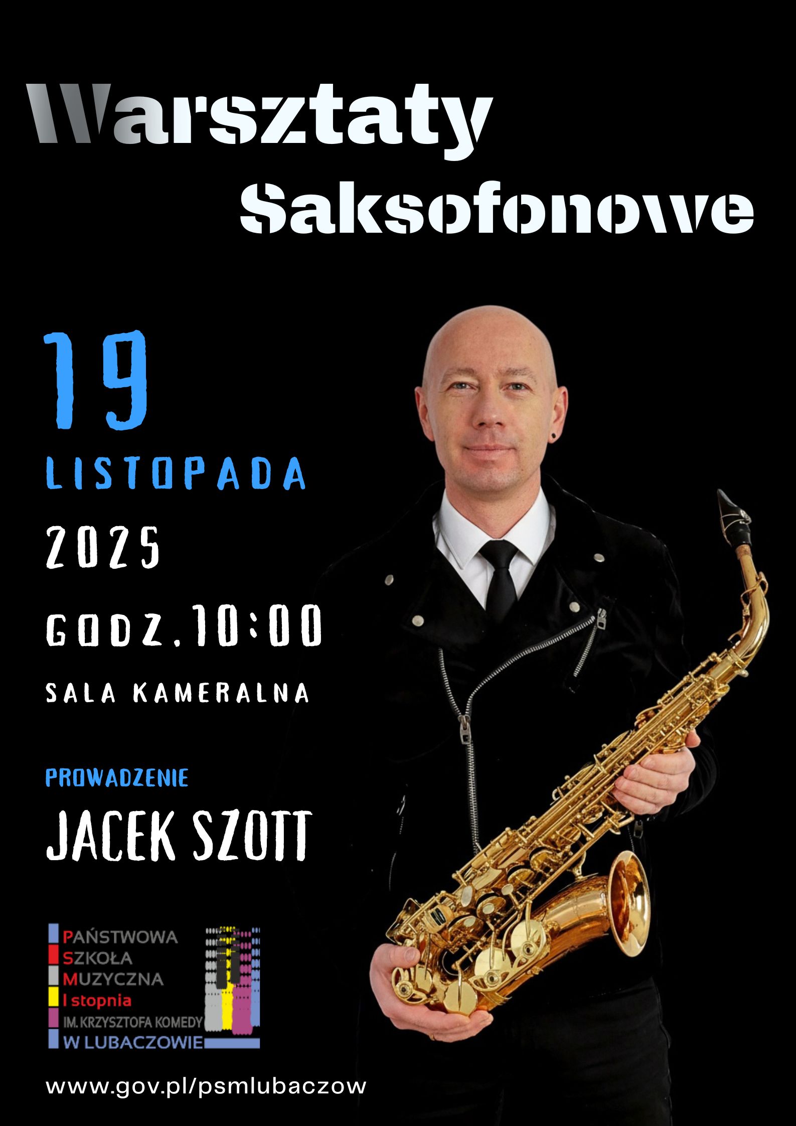 Zapraszamy na warsztaty saksofonowe, które poprowadzi mgr Jacek Szott. Warsztaty odbędą się 19 listopada 2025 r. od godz. 10:00 w auli szkolnej.