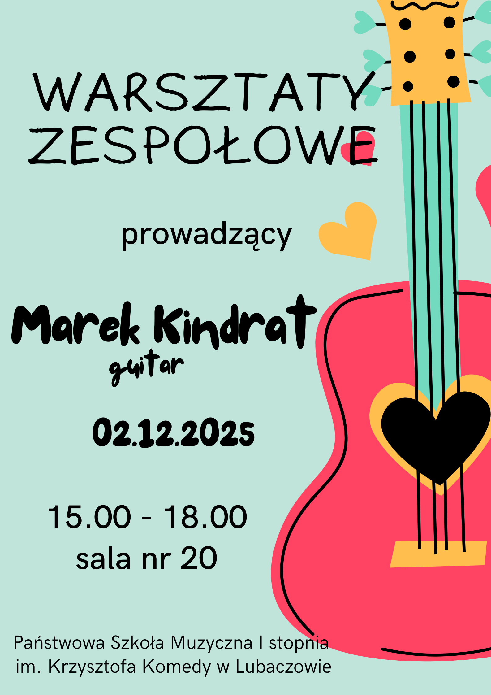 Zapraszamy na warsztaty zespołowe, które poprowadzi Marek Kindrat. Warsztaty odbędą się 2 grudnia 2025 r. w godz. 15:00-18:00 w sali nr 20.