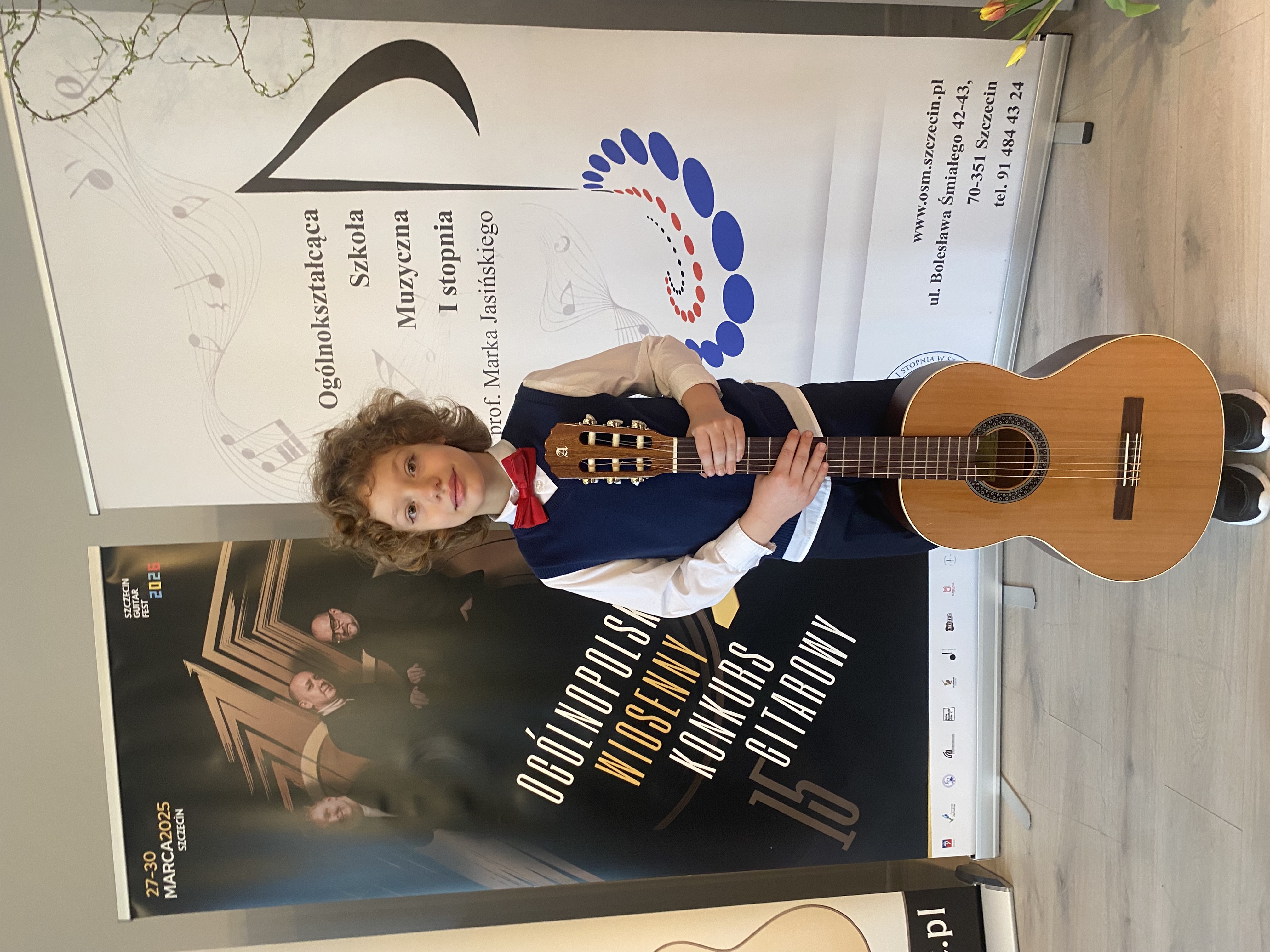Marcel Minorczyk z kl. II cyklu 6-letniego, z klasy gitary Zbigniewa Gumiennego, odniósł podwójny sukces na konkursach ogólnopolskich. Uczeń otrzymał wyróżnienie na XV Ogólnopolskim Wiosennym Konkursie Gitarowym w Szczecinie, konkurs odbył się w dniach 29 - 30 marca 2025r. oraz został laureatem III miejsca na X Ogólnopolskich Prezentacjach Gitarowych w Świebodzinie, które odbyły się 31 marca 2025 r. Serdecznie gratulujemy Marcelowi i życzymy dalszych sukcesów muzycznych.
