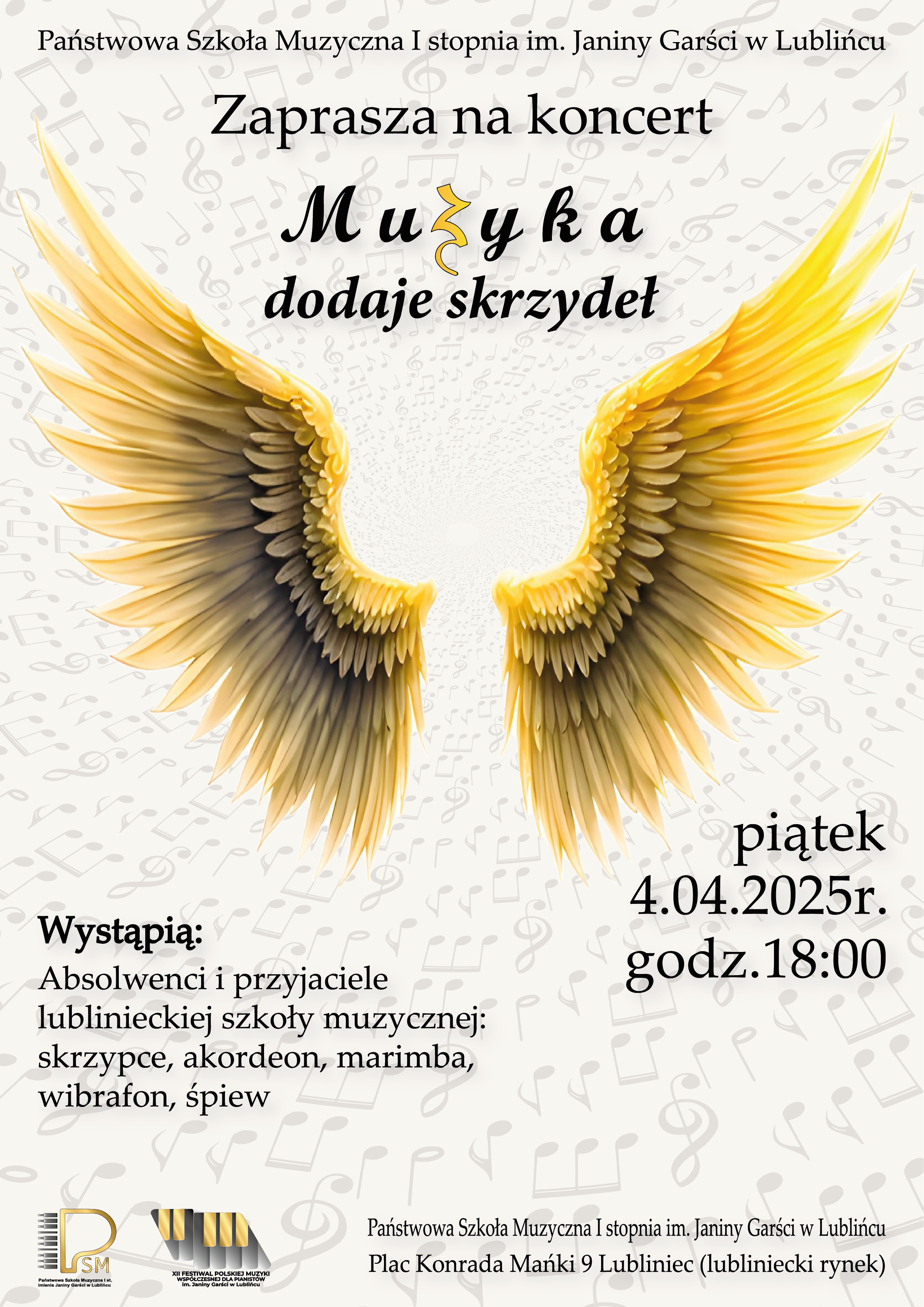 Koncert "Muzyka dodaje skrzydeł" 4.04.2025 r. godz. 18.00