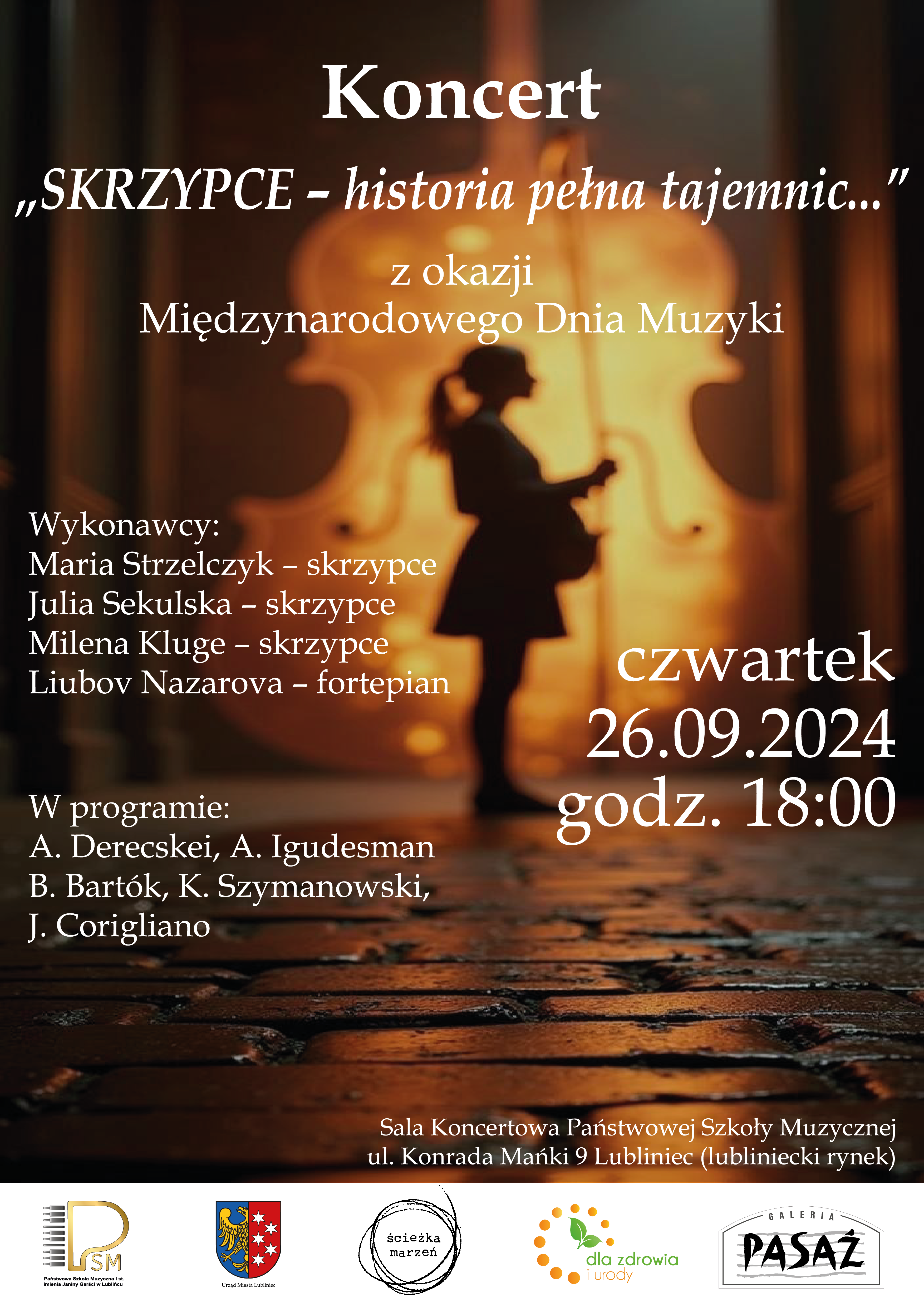 Serdecznie zapraszamy na Koncert "SKRZYPCE" - historia pełna tajemnic..." z okazji Międzynarodowego Dnia Muzyki - 26.09.2024 r. (czwartek) godz. 18:00, który odbędzie się w