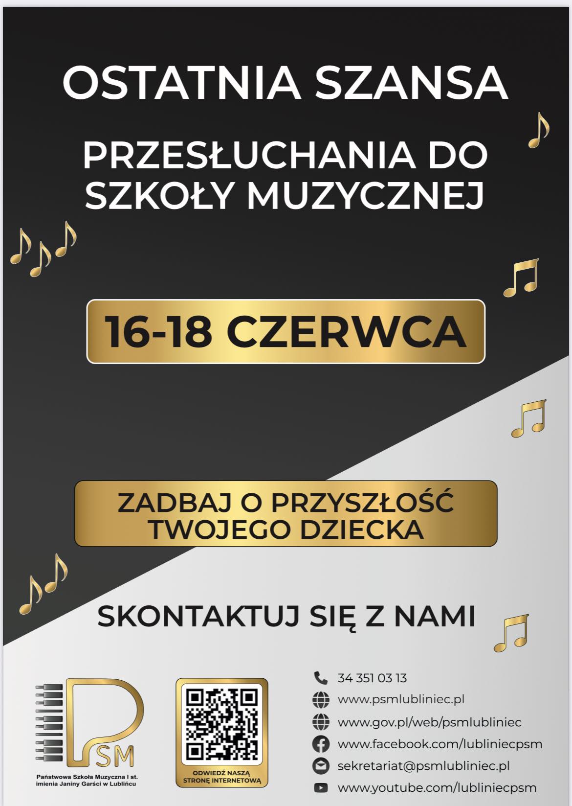 Zapraszamy na przesłuchania wstępne do Państwowej Szkoły Muzycznej I stopnia w Lublińcu.