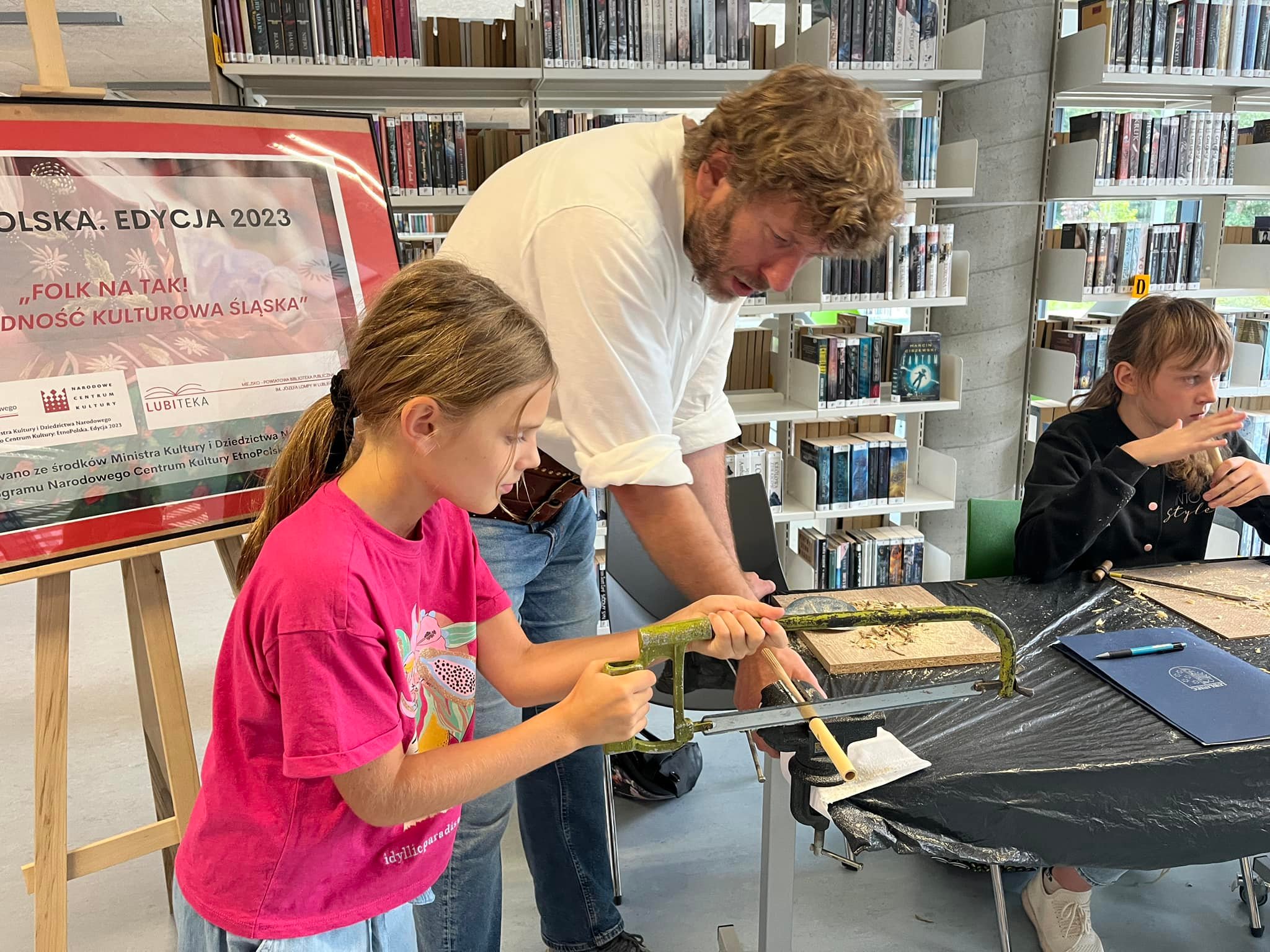 14 września w LUBITECE – Miejsko – Powiatowej Bibliotece Publicznej im. J. Lompy w Lublińcu PRZEMYSŁAW FICEK I MARCIN BLACHURA - w ramach programu „Narodowego Centrum Kultury EtnoPolska. Edycja 2023" poprowadzili warsztaty samodzielnego wykonania prostego instrumentu dętego drewnianego – piszczałek.