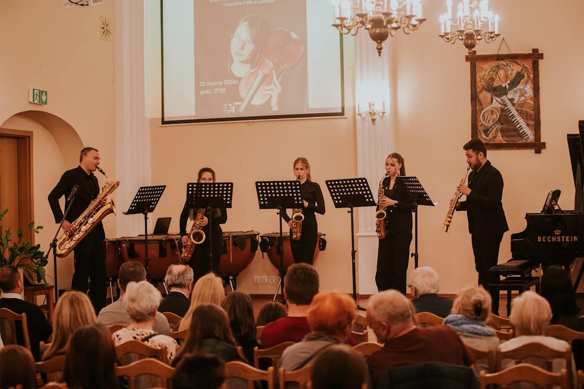 22 marca 2024 r. w auli naszej szkoły odbył się przepiękny koncert w wykonaniu nauczycieli wraz z uczniami pt. "Mistrz i uczeń". Jednocześnie w holu auli odbył się wernisaż fotografii - owoc współpracy lublinieckiej fotografki Czesławy Włuki i naszych uczniów.