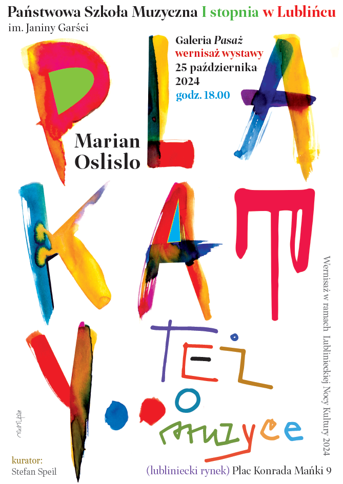 Serdecznie zapraszamy na wernisaż wystawy Mariana Oslislo w Państwowej Szkole Muzycznej w Lublińcu, który odbędzie się w dniu 25.10.2024 r. o godz. 18.00