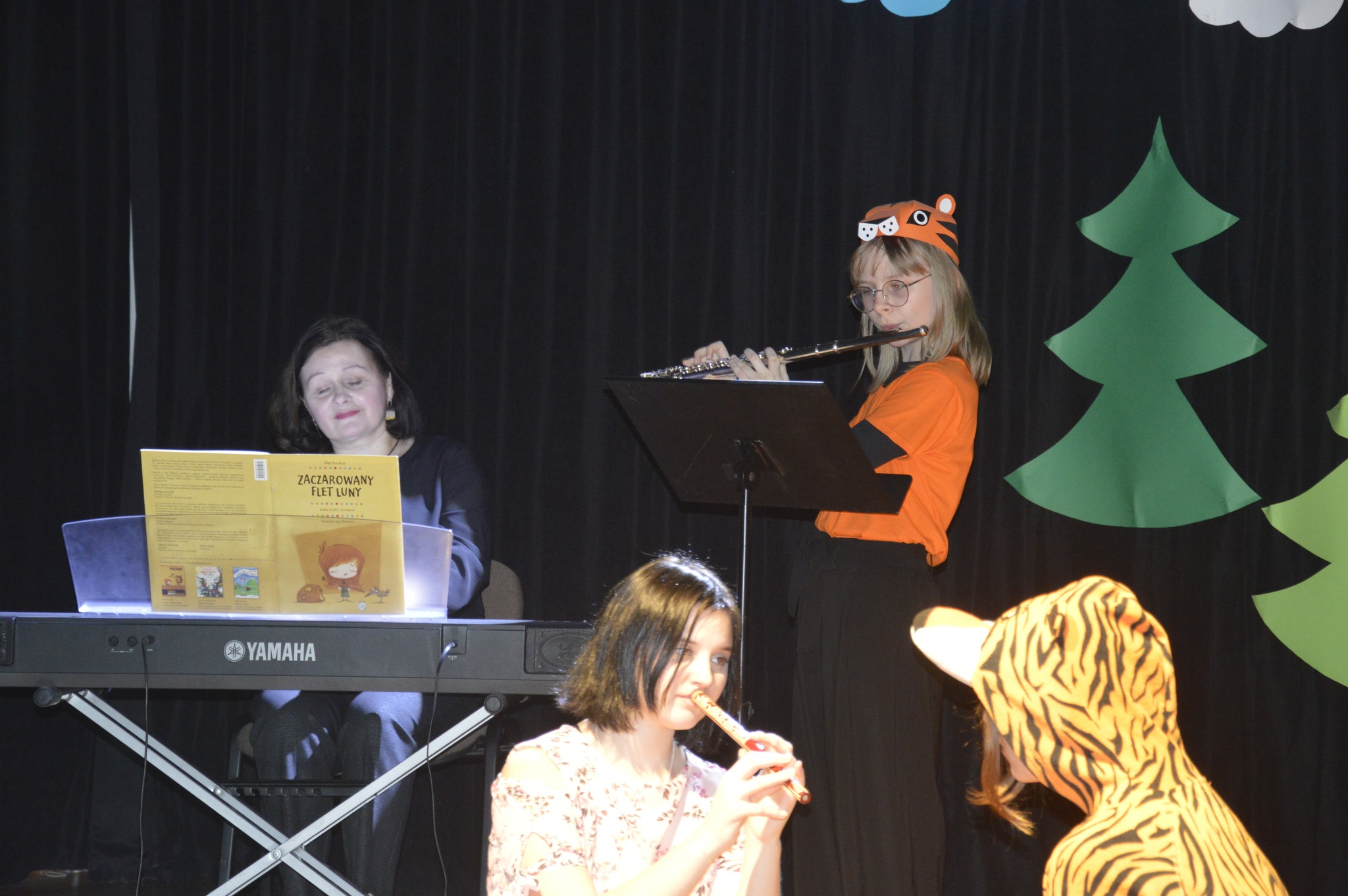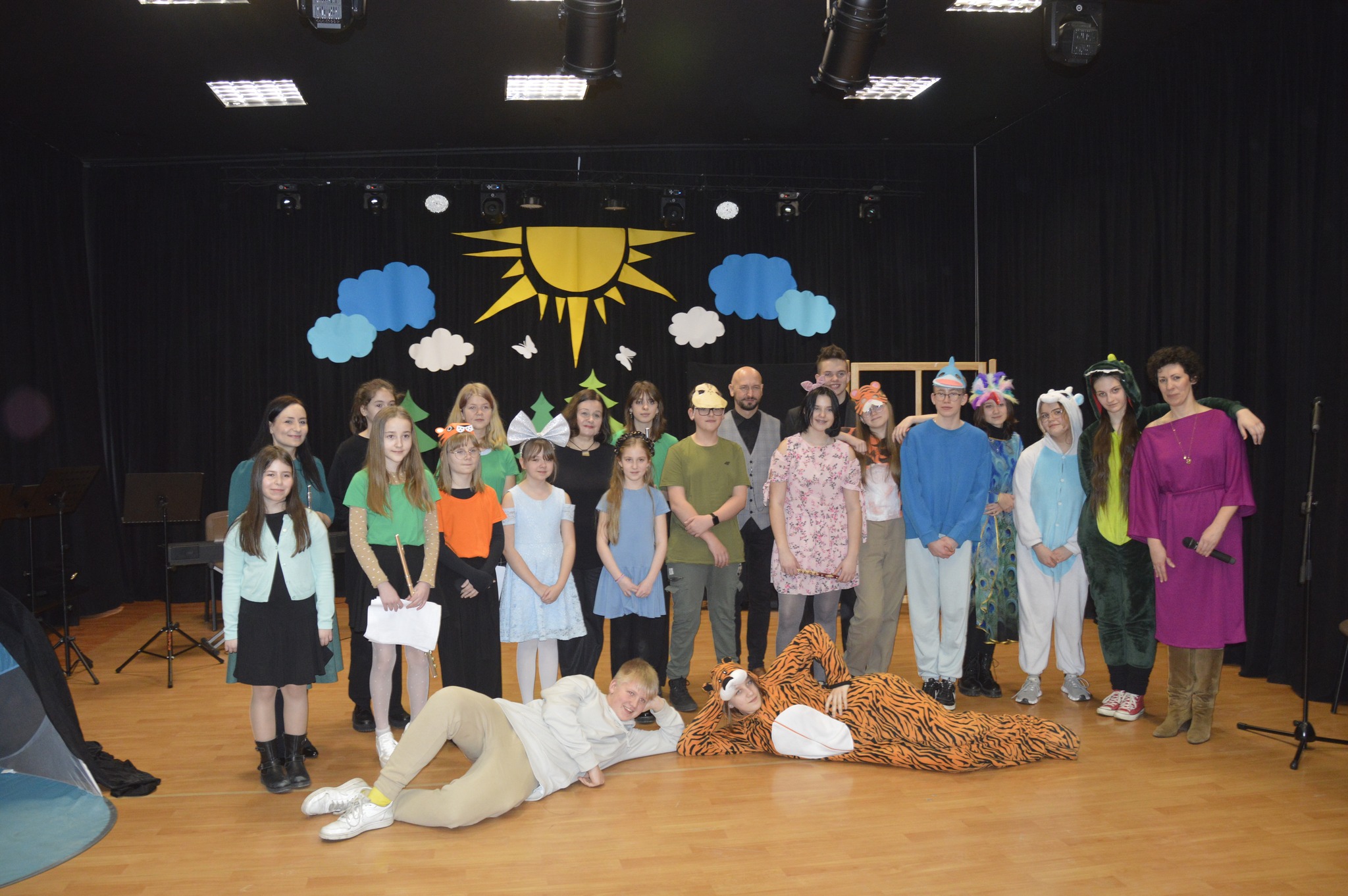 W dniach 1. i 8. marca 2023r. uczniowie klasy fletu wspólnie z uczestnikami sekcji teatralnej przy PMDK wystąpili w spektaklu słowno-muzycznym pt. ,,Zaczarowany flet Luny" Blaza Pucihara w sali widowiskowej PMDK w Miastku. Flecistki solo i w zespole przygotowała Pani mgr Justyna Uśpińska, a przy pianinie towarzyszyła im Pani mgr Iryna Rengach. Natomiast aktorów i piękną dekorację przygotował Pan Arkadiusz Demko. Spektakl z zaciekawieniem i entuzjazmem obejrzeli uczniowie klas 0-2 miasteckich szkół podstawowych. Składamy serdeczne podziękowania na ręce Pani Dyrektor PMDK za wspaniałą współpracę. Brawa dla wszystkich występujących!