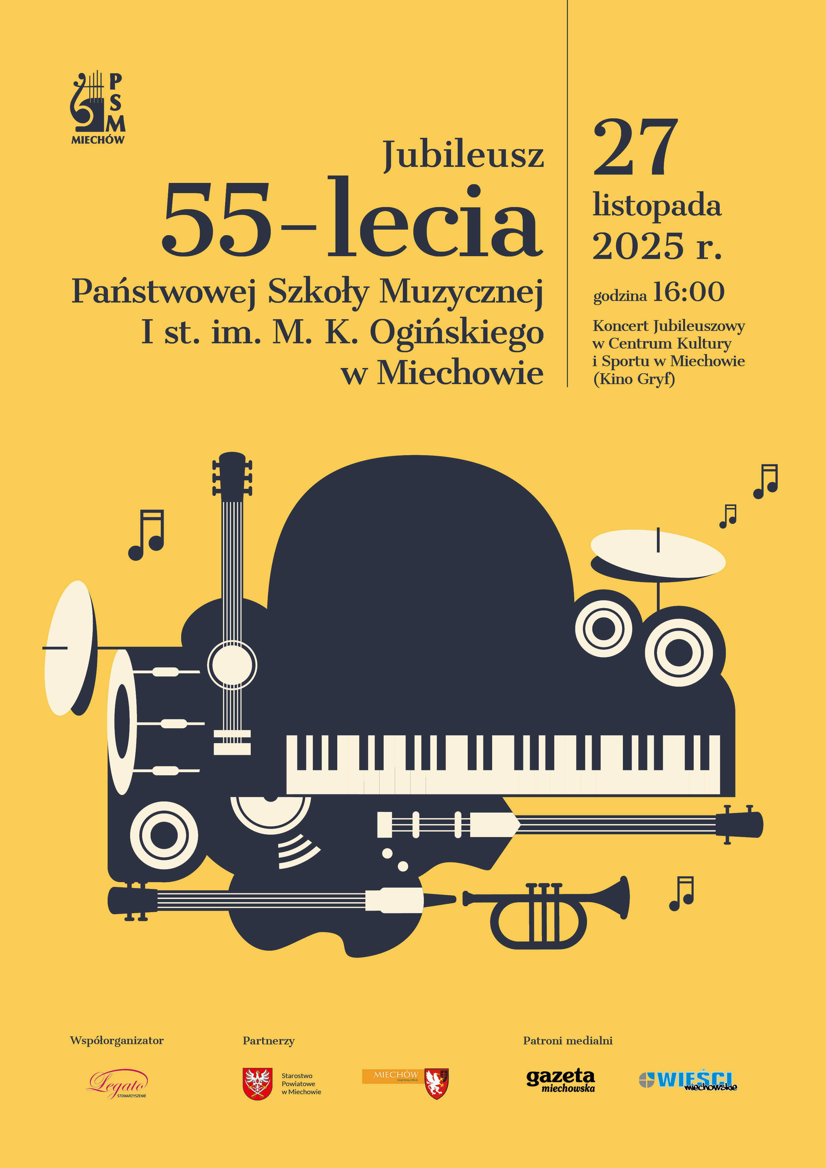 27 listopada 2025 roku w Centrum Kultury i Sportu w Miechowie (Kino Gryf) odbędzie się uroczysty Koncert Jubileuszowy z okazji 55-lecia Państwowej Szkoły Muzycznej I stopnia im. M.K. Ogińskiego w Miechowie.