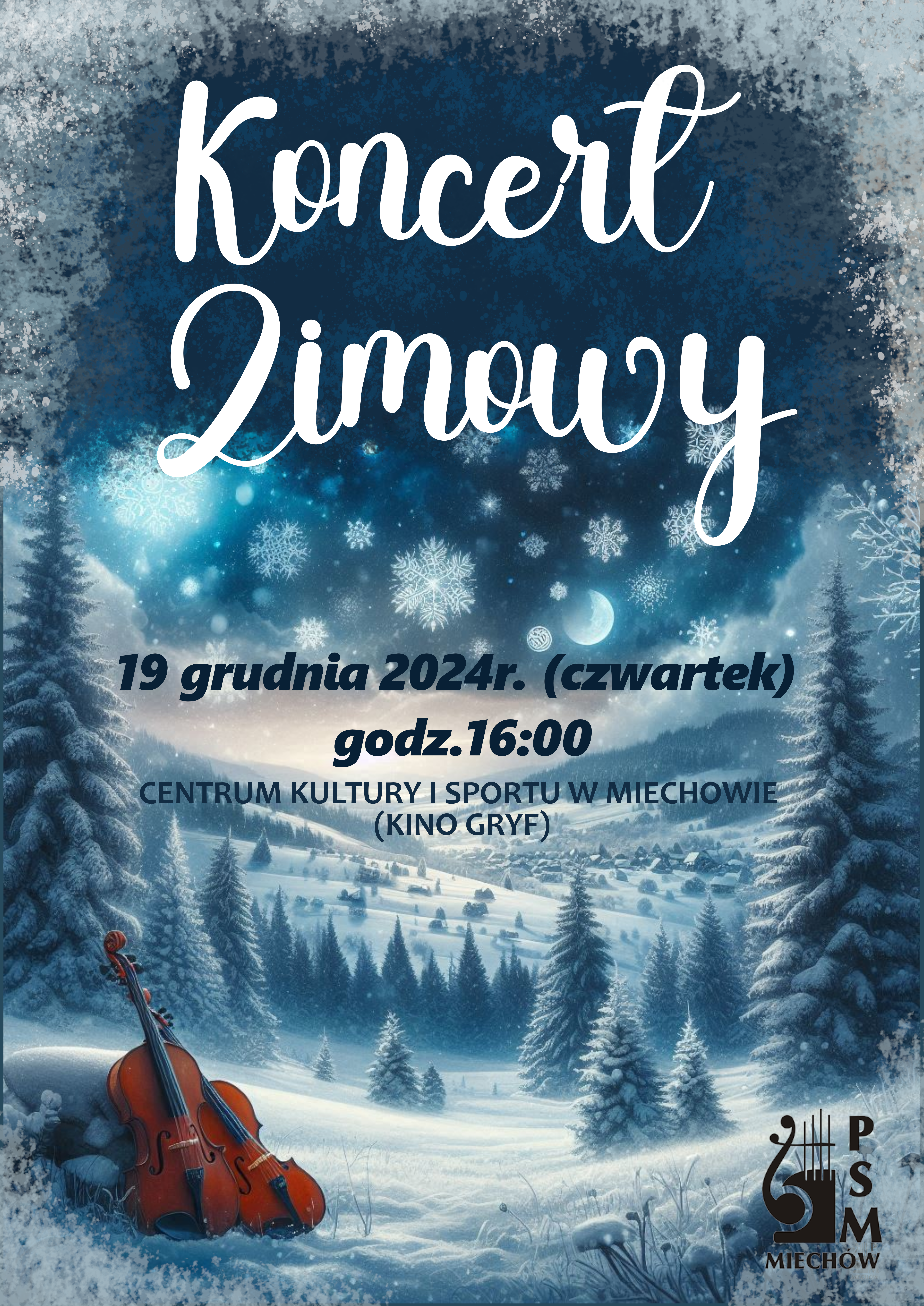 Zapraszamy na Koncert Zimowy, który odbędzie się 19 grudnia 2024 r. o godz. 16.00 w CKiS w Miechowie (ul. Racławicka 10).