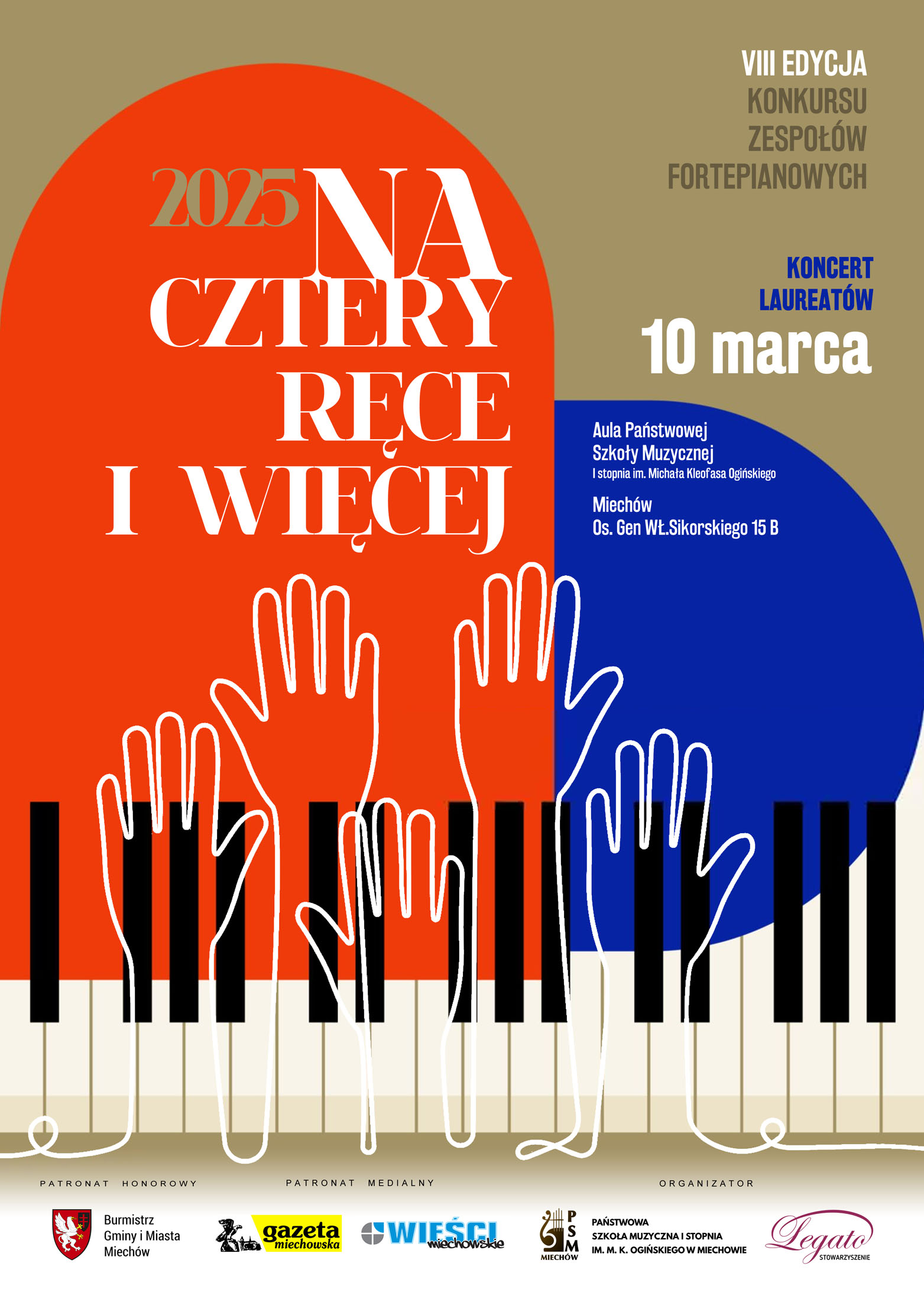 Zapraszamy pedagogów pianistów do udziału w VIII Konkursie Zespołów Fortepianowych „Na cztery ręce i więcej”, którego organizatorem jest Państwowa Szkoła Muzyczna I stopnia im. Michała Kleofasa Ogińskiego w Miechowie oraz Stowarzyszenie Przyjaciół PSM I stopnia w Miechowie LEGATO.
