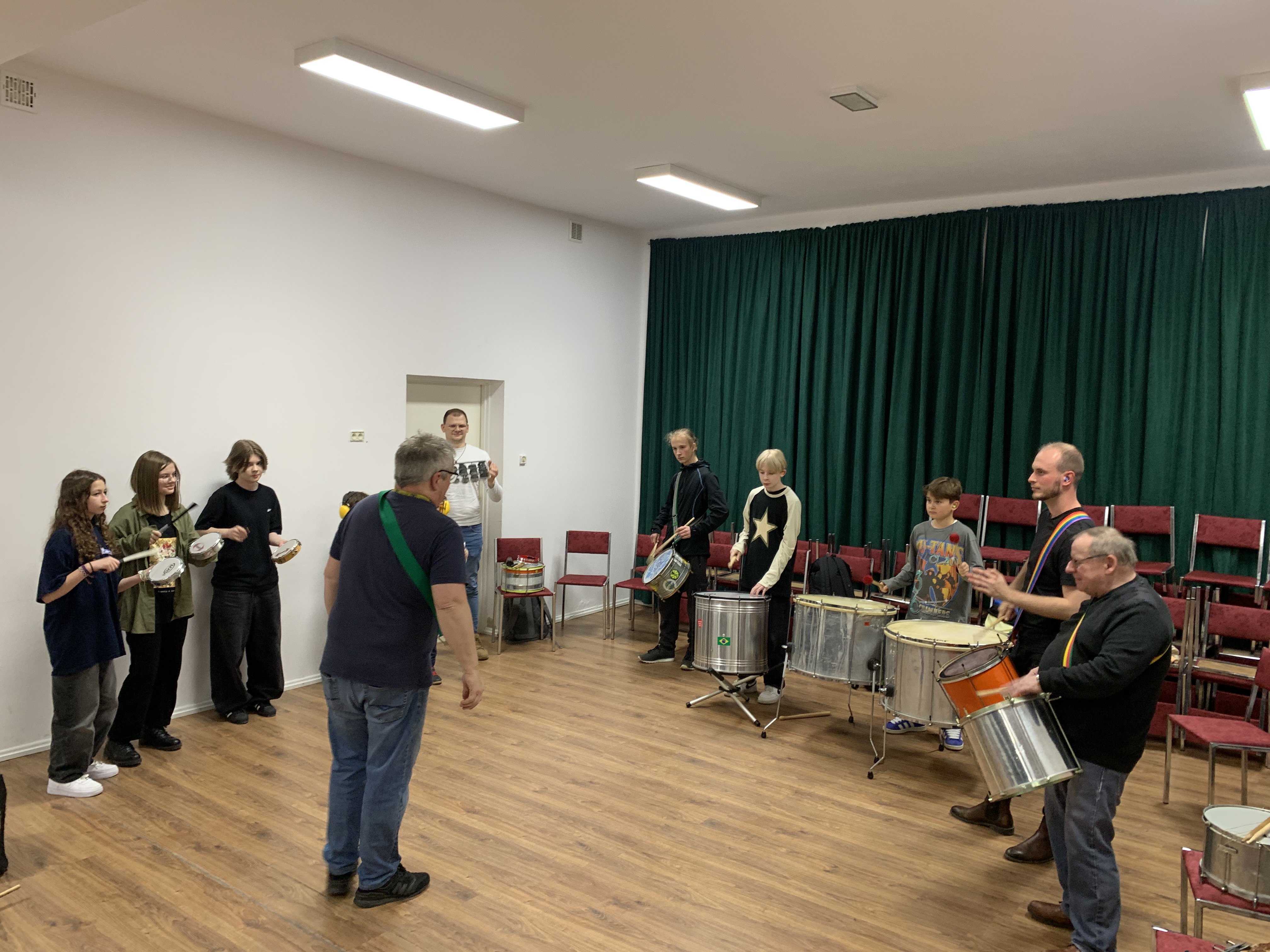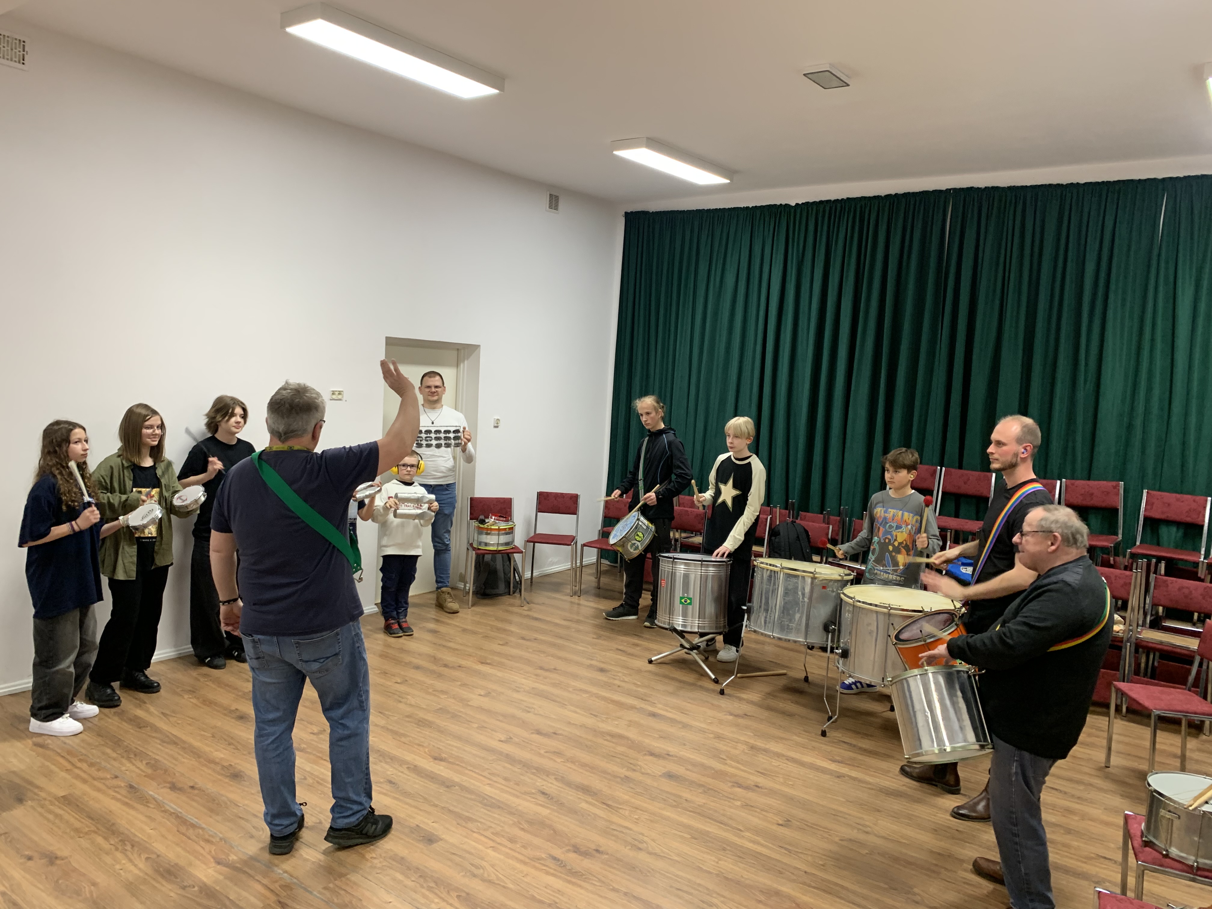 We wtorek 6 marca br. w naszej szkole odbyły sie warsztaty perkusyjne z mgr Andrzejem Kaczmarczykiem. Było to niezwykłe doświadczenie pełne rytmu, pasji i wspólnego muzykowania. Podczas zajęć zgłębialiśmy tajniki brazylijskich rytmów tzw. Samby batucady. Pan Andrzej Kaczmarczyk dzielił się swoją wiedzą i umiejętnościami, inspirując nas do odkrywania nowych dźwięków i technik gry na instrumentach perkusyjnych. Dzięki temu spotkaniu nie tylko rozwijaliśmy swoje umiejętności muzyczne, ale także poznaliśmy wiele nowych instrumentów takich jak: repinique, caixa, surdo, tamborim itp.