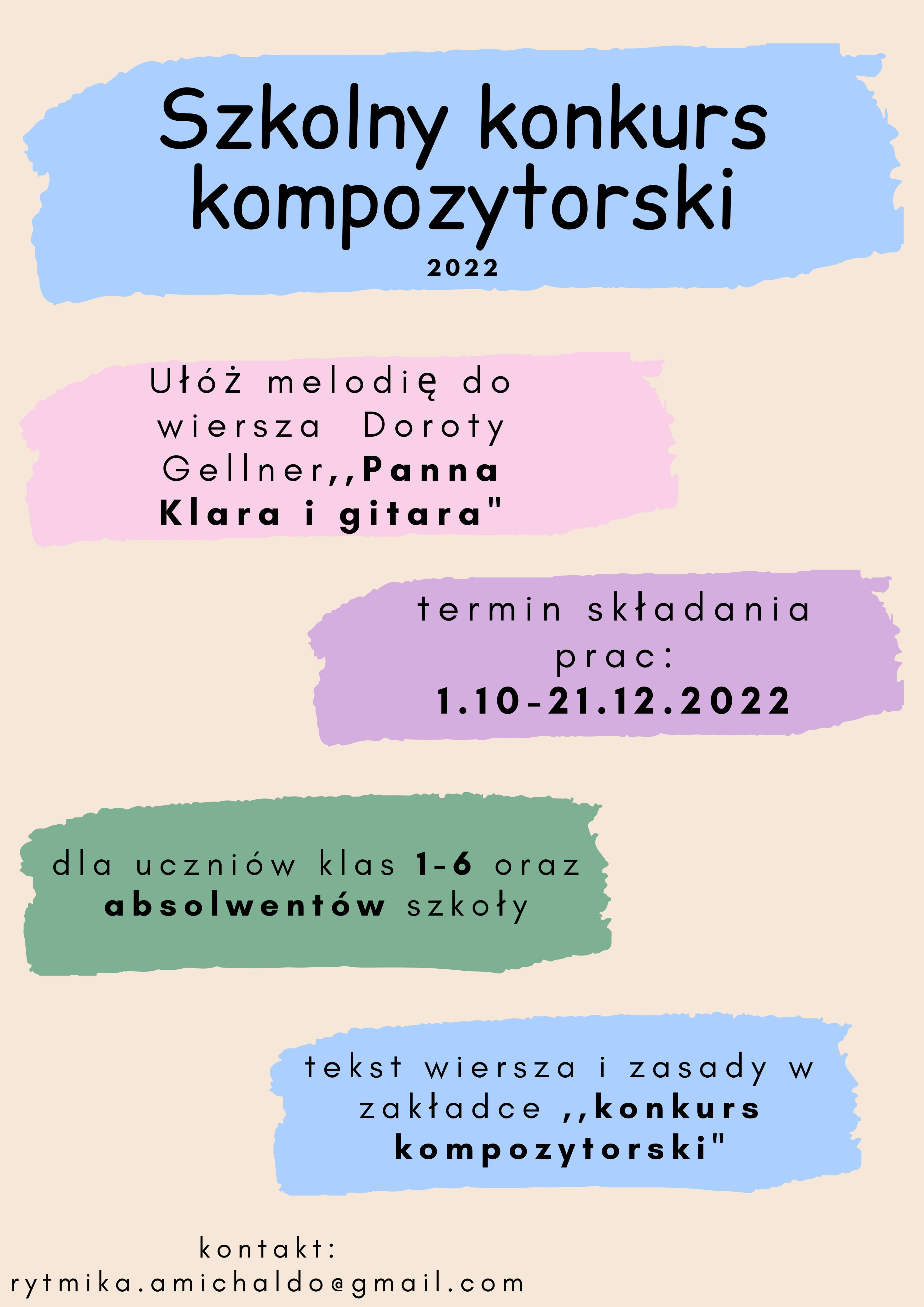 Jeśli potrafisz ułożyć melodię do wiersza, a nie umiesz jej zapisać – też możesz wziąć udział w konkursie– napisz do koordynatora konkursu na poniższy adres mailowy, a znajdziemy sposób, aby zapisać twoją kompozycję!